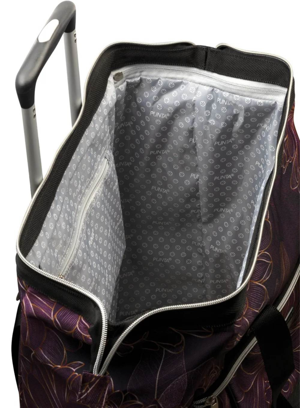 Elegancki wózek na zakupy Punta Big Wheel ze specjalnie opracowanymi kołami XL toczy się prawie sam - jest cichy i przyjemny! Dzięki wyjątkowo szerokiemu otwarciu jest wystarczająco miejsca na duże zakup.