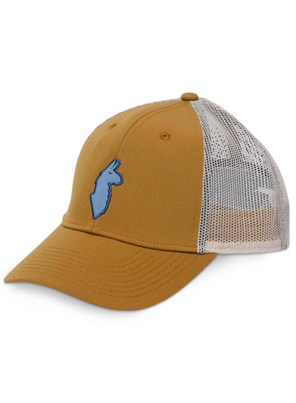 Cotopaxi Llama Trucker Hat – klasyczna czapka typu trucker z daszkiem wykonanym z recyklingowanych sieci rybackich. Lekka, wygodna i regulowana, idealna na każdą przygodę.