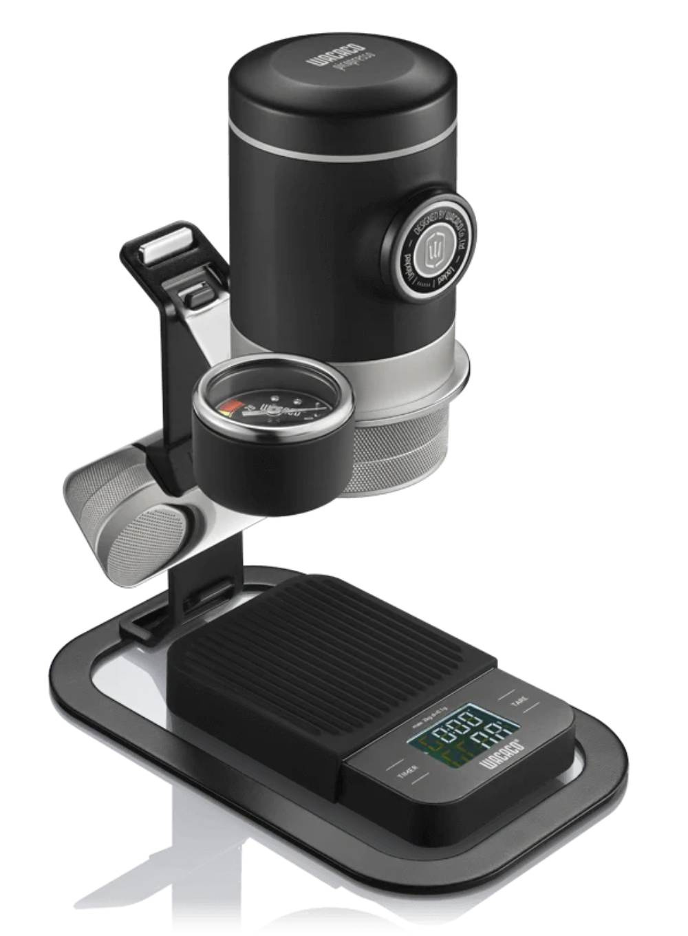 Uwaga: stojak jest kompatybilny wyłącznie z Wacaco Picopresso. Picopresso, manometr i Exagram widoczne na zdjęciach nie są częścią zestawu.