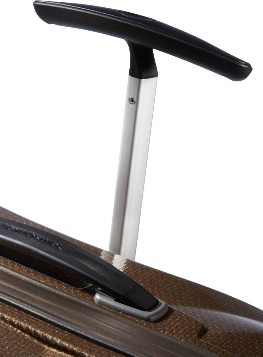 Mała walizka Samsonite Lite Shock Curv porusza się łatwo i wygodnie dzięki regulowanemu uchwytowi i 4 wielokierunkowym kółkom. Z boku i na górze znajdują się również 2 uchwyty do przenoszenia.