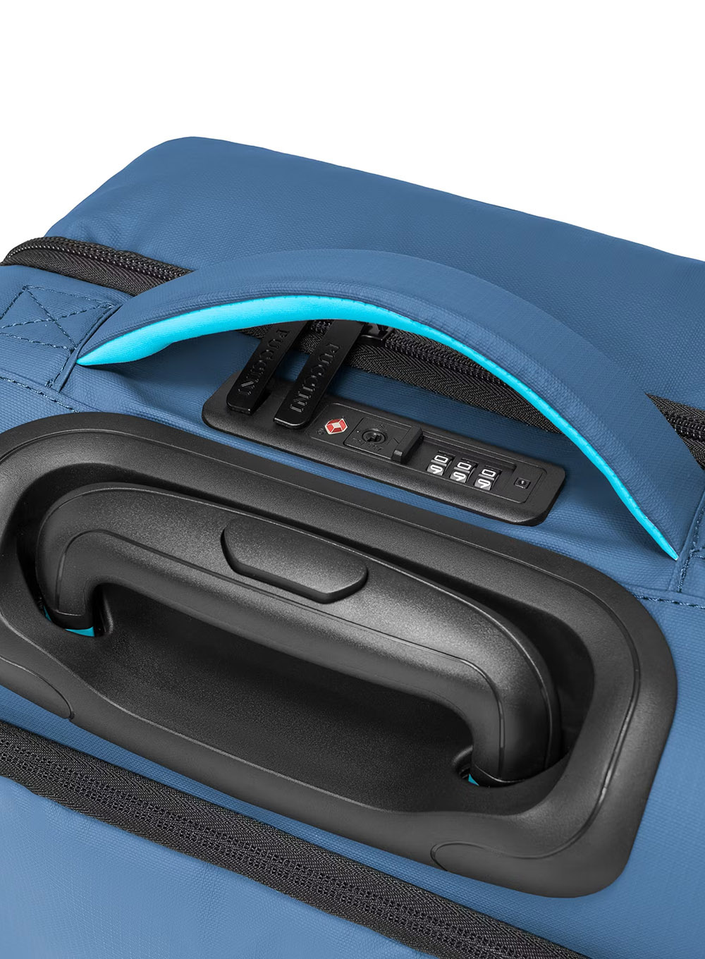Praktyczne uchwyty ułatwiają przenoszenie, a szyfrowany zamek TSA zapewnia bezpieczeństwo bagażu. Przemyślane wnętrze z dwiema funkcjonalnymi komorami gwarantuje wygodne i uporządkowane pakowanie.