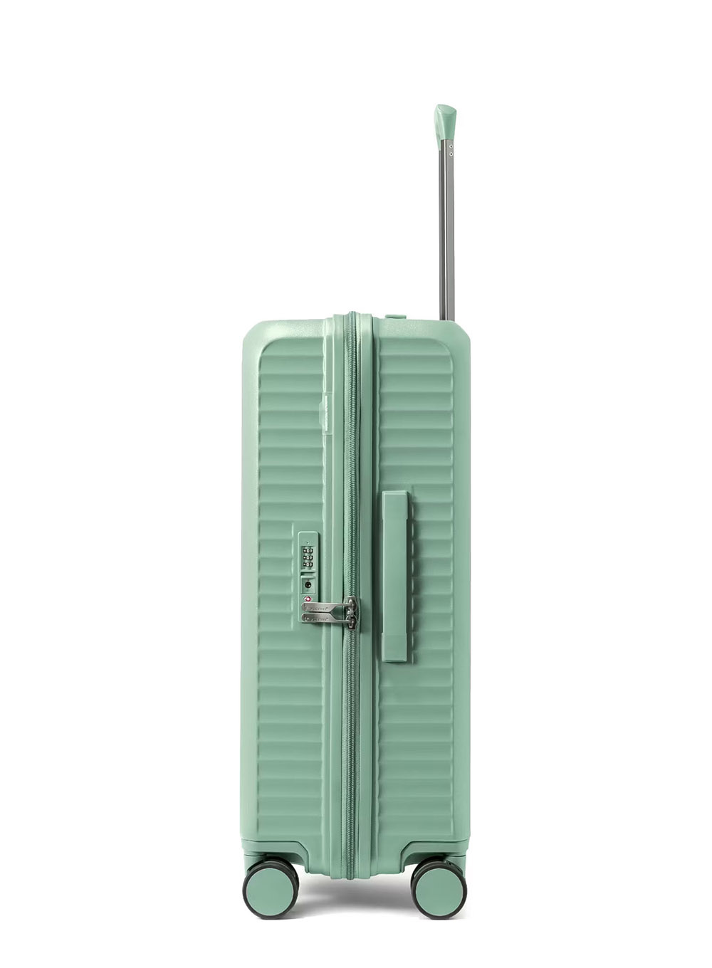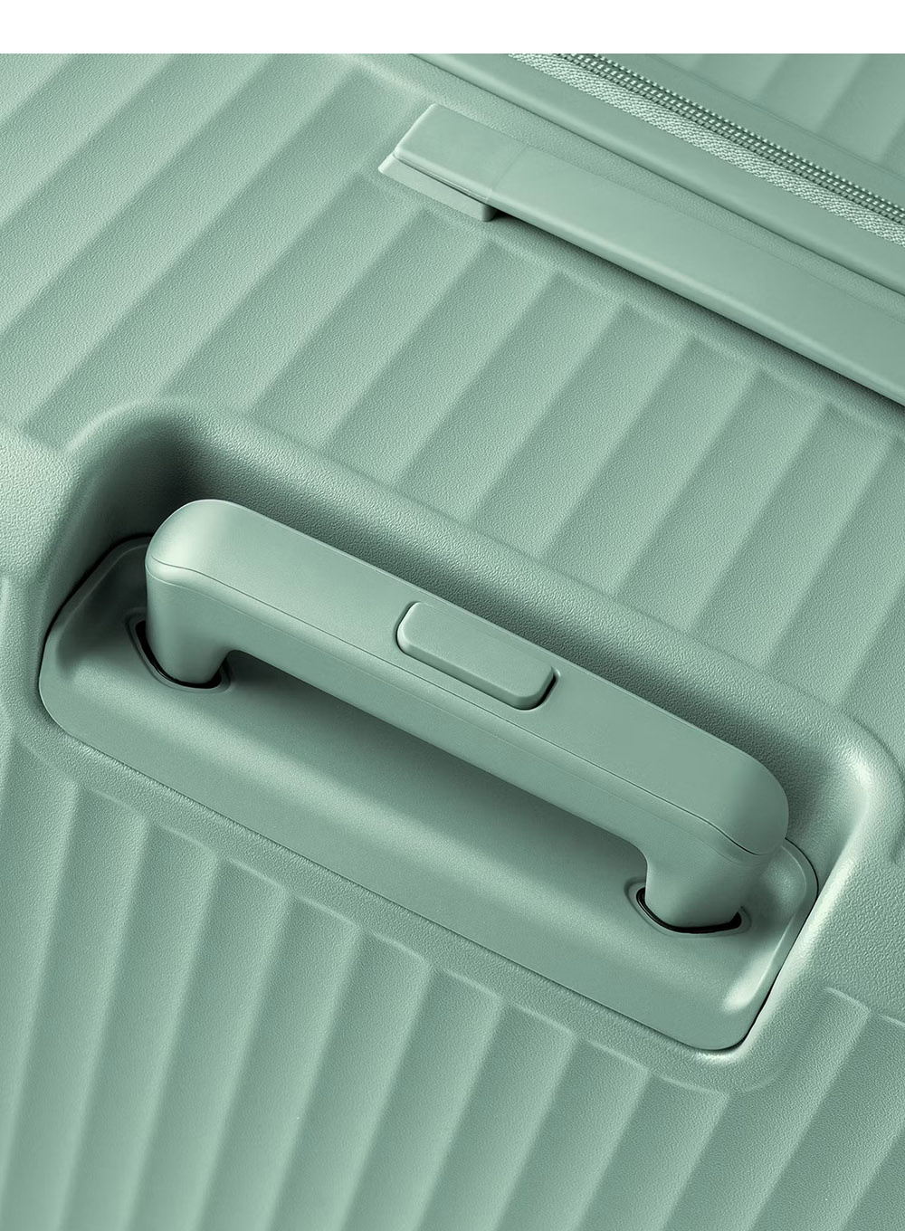 Model Monte Carlo został wyposażony w cztery podwójne, ciche koła obrotowe 360° o średnicy 60 mm, które gwarantują płynność ruchu i stabilność prowadzenia nawet po nierównych nawierzchniach. W pełni aluminiowy stelaż z teleskopową rączką zapewnia lekkość, wytrzymałość i komfort użytkowania, a solidne, płaskie uchwyty na górze i z boku ułatwiają przenoszenie walizki.