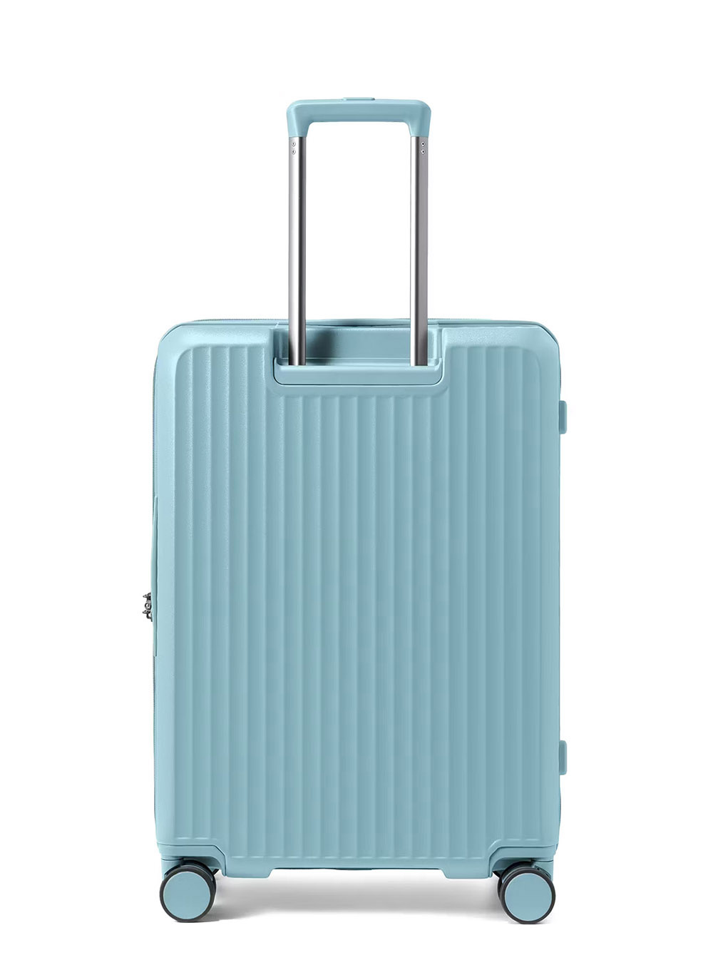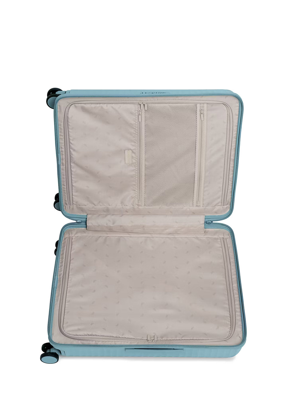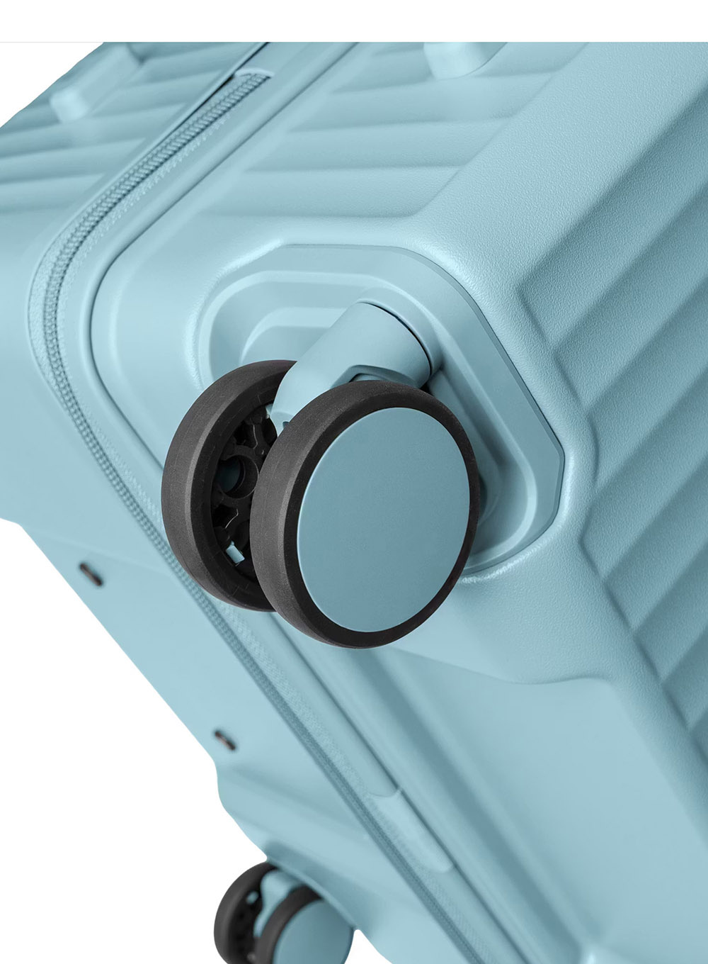Model Monte Carlo został wyposażony w cztery podwójne, ciche koła obrotowe 360° o średnicy 60 mm, które gwarantują płynność ruchu i stabilność prowadzenia nawet po nierównych nawierzchniach. W pełni aluminiowy stelaż z teleskopową rączką zapewnia lekkość, wytrzymałość i komfort użytkowania, a solidne, płaskie uchwyty na górze i z boku ułatwiają przenoszenie walizki.