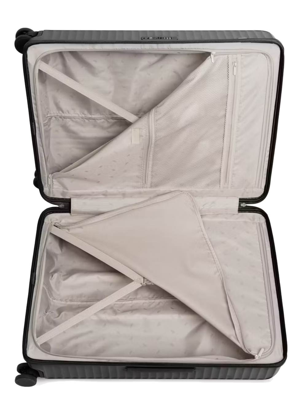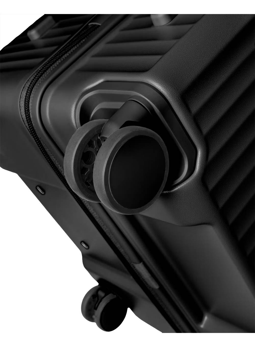 Monte Carlo została wyposażona w cztery podwójne, ciche koła obrotowe 360° o średnicy 60 mm, które gwarantują stabilność i płynne prowadzenie nawet po nierównych nawierzchniach. W pełni aluminiowy stelaż z teleskopową rączką zapewnia wytrzymałość, lekkość i komfort manewrowania, a solidne, płaskie uchwyty ułatwiają przenoszenie walizki.