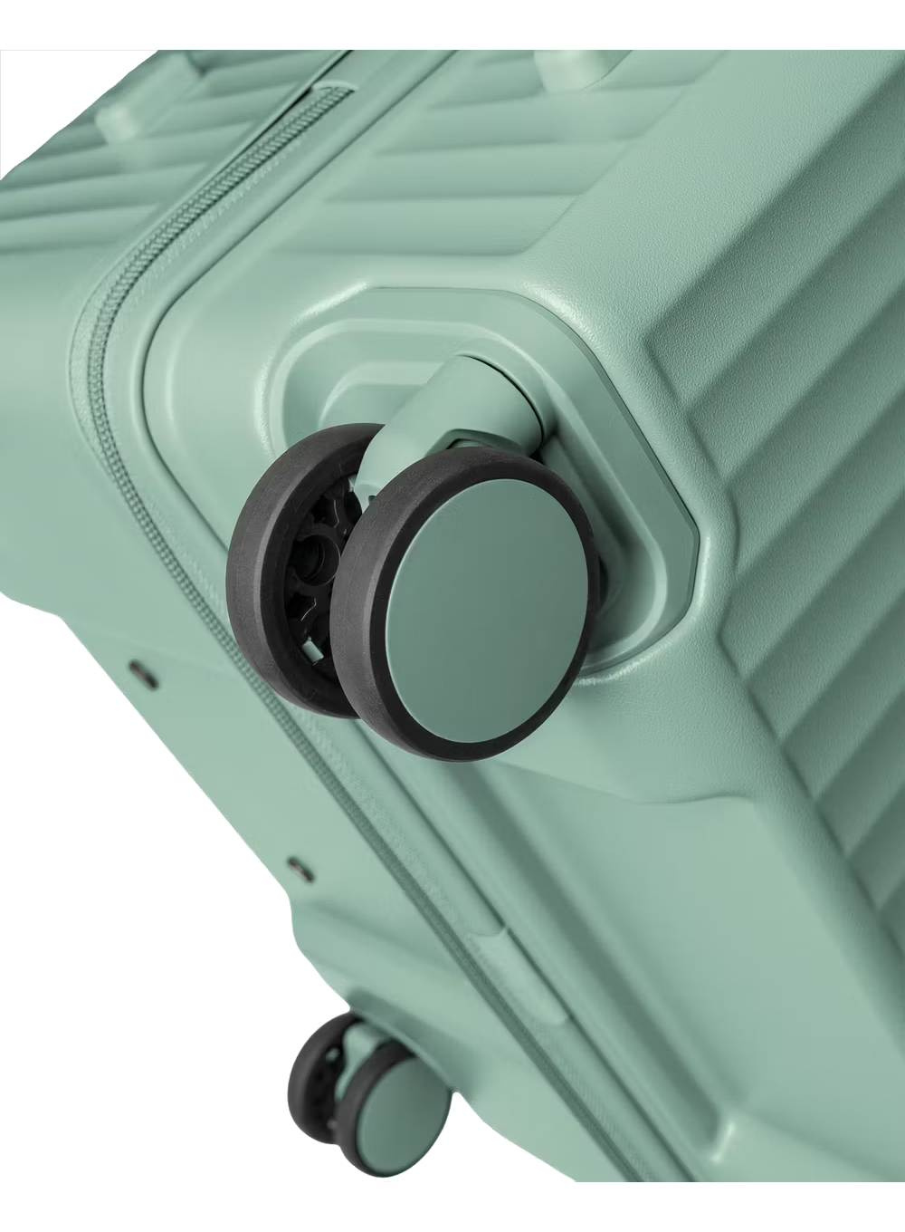 Monte Carlo została wyposażona w cztery podwójne, ciche koła obrotowe 360° o średnicy 60 mm, które gwarantują stabilność i płynne prowadzenie nawet po nierównych nawierzchniach. W pełni aluminiowy stelaż z teleskopową rączką zapewnia wytrzymałość, lekkość i komfort manewrowania, a solidne, płaskie uchwyty ułatwiają przenoszenie walizki.