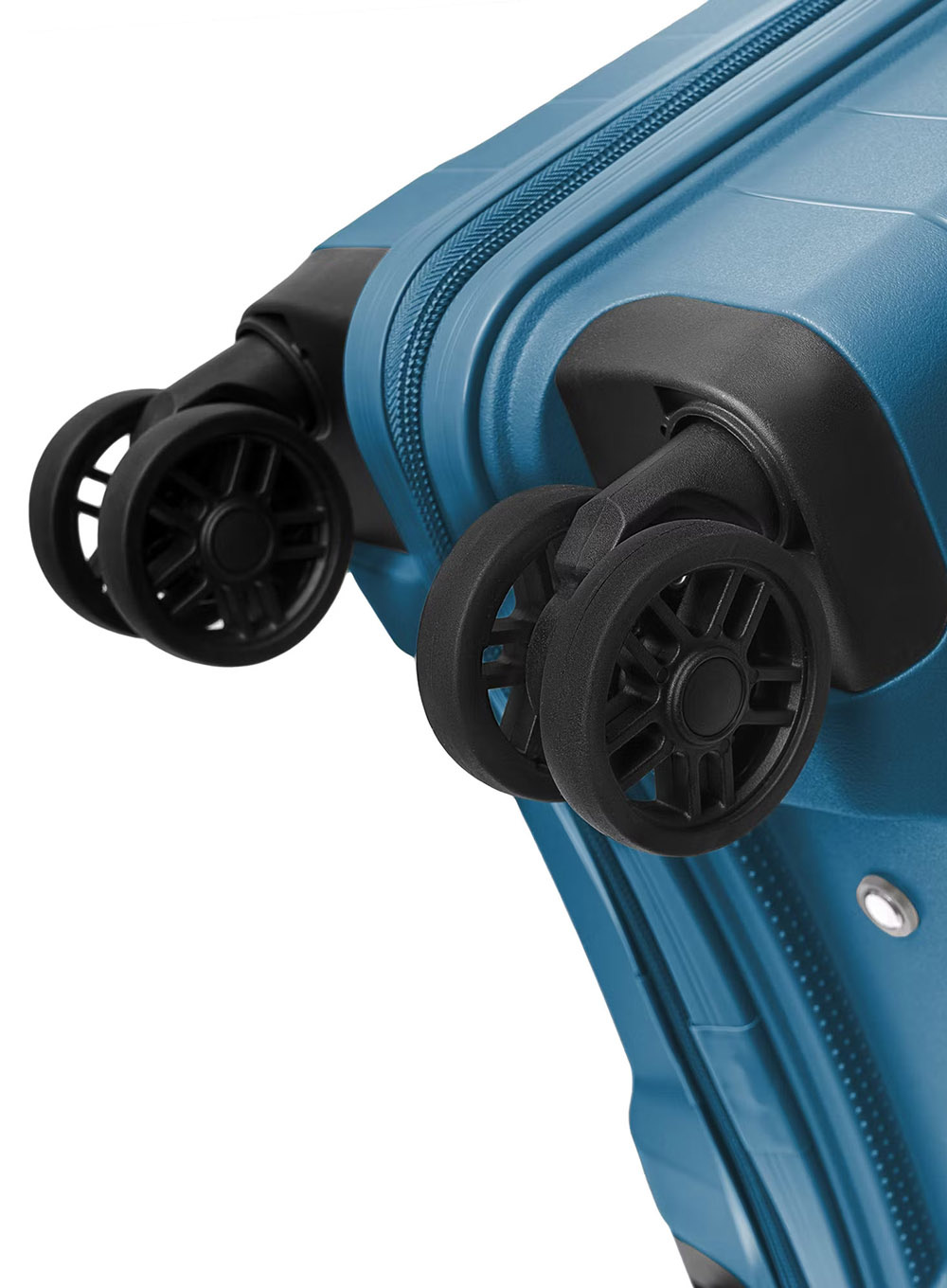 Komfort prowadzenia walizki zapewniają cztery obrotowe koła 360° wykonane z wytrzymałego tworzywa z domieszką kauczuku – ciche, stabilne i łatwe w manewrowaniu. Regulowany teleskopowy stelaż pozwala dopasować wysokość uchwytu do indywidualnych potrzeb. Puccini Seoul to doskonały wybór dla osób, które szukają trwałego, pojemnego i stylowego bagażu na każdą podróż.
