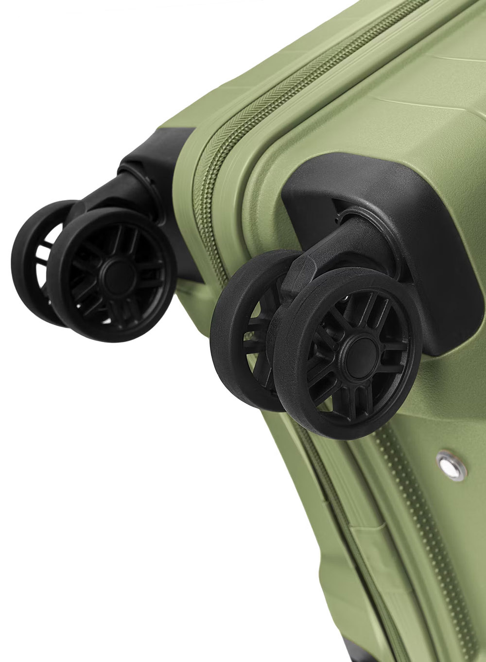 Walizka wyposażona jest w cztery ciche, obrotowe koła 360°, które umożliwiają swobodne poruszanie się nawet w zatłoczonych miejscach. Regulowany, teleskopowy stelaż zapewnia wygodne dopasowanie do wzrostu użytkownika. Model Puccini Seoul to połączenie nowoczesnego designu, wytrzymałości i praktycznych rozwiązań, które sprawiają, że podróż staje się jeszcze bardziej komfortowa.