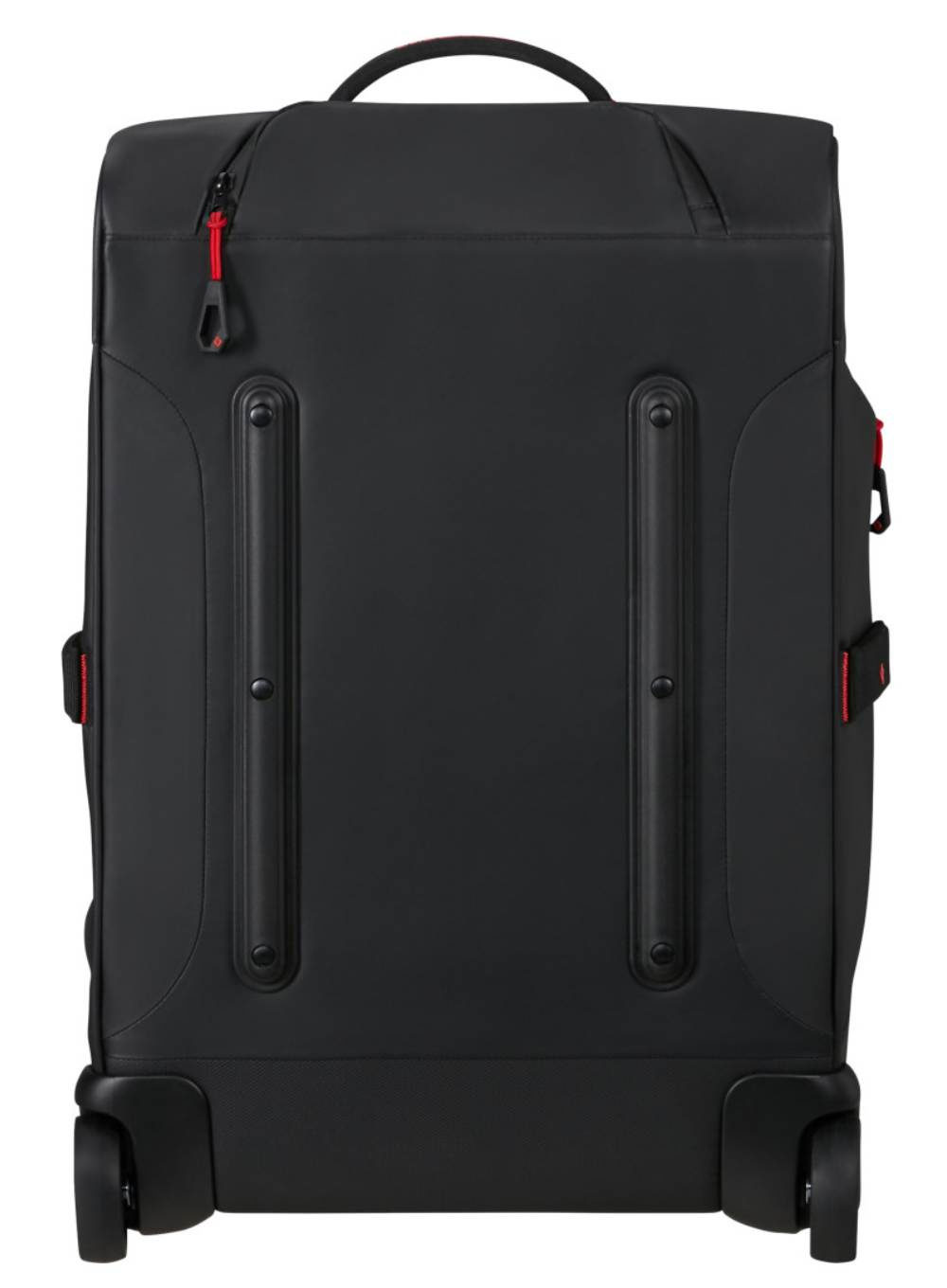 Dzięki licznym uchwytom (na górze, froncie i spodzie) oraz podwójnemu, teleskopowemu uchwytowi, torba zapewnia wygodne przenoszenie i manewrowanie. Dwa solidne kółka gwarantują płynne prowadzenie po każdej nawierzchni. Wnętrze wyposażone w elastyczne pasy mocujące i kieszeń na suwak ułatwia utrzymanie porządku. Model spełnia wymogi bagażu kabinowego i jest idealny na krótkie wyjazdy służbowe lub weekendowe.