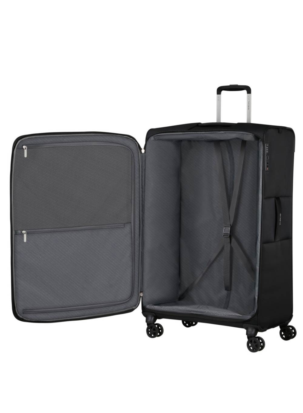 Walizka duża poszerzana Samsonite Base Breeze Exp została zaprojektowana z myślą o maksymalnym komforcie i funkcjonalności podczas podróży. Dzięki opcji rozszerzenia zyskujesz dodatkową przestrzeń, pozwalającą przewieźć do 25 kg bagażu. Wnętrze zostało starannie zaprojektowane – górna komora wyposażona jest w kieszeń z siatki na suwak, a dolna w elastyczne pasy mocujące, które utrzymują ubrania w idealnym porządku i chronią je przed zagnieceniami.
