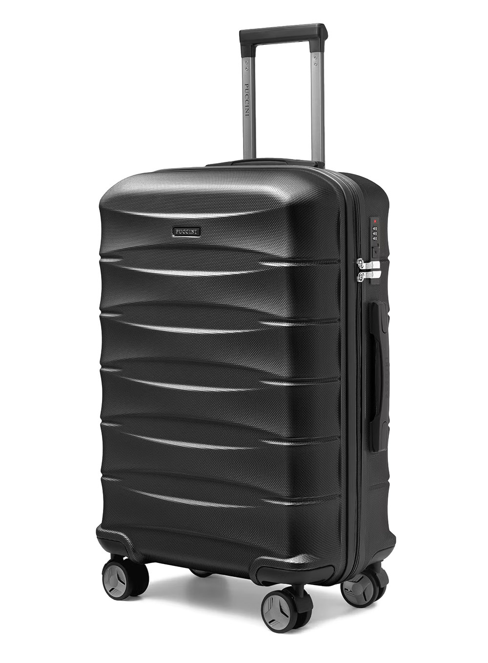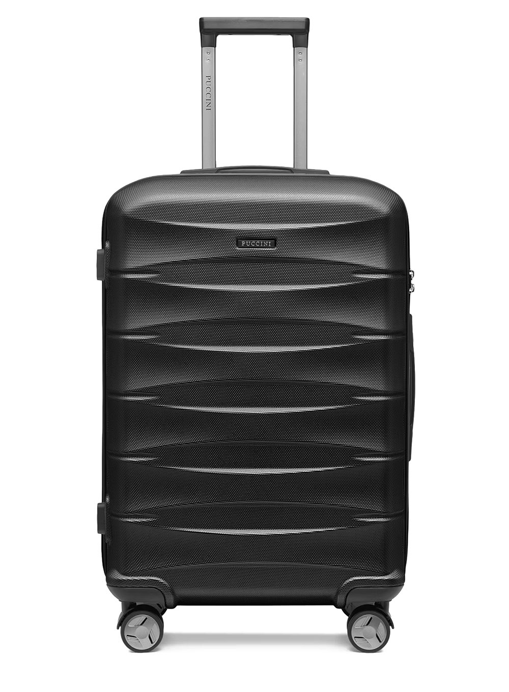 Średnia walizka Puccini Cairo łączy nowoczesny design z funkcjonalnością i trwałością. Wykonana z wytrzymałego ABS-u, posiada zamek szyfrowy, teleskopową rączkę oraz cztery obrotowe kółka 360°, zapewniające wygodę w każdej podróży.