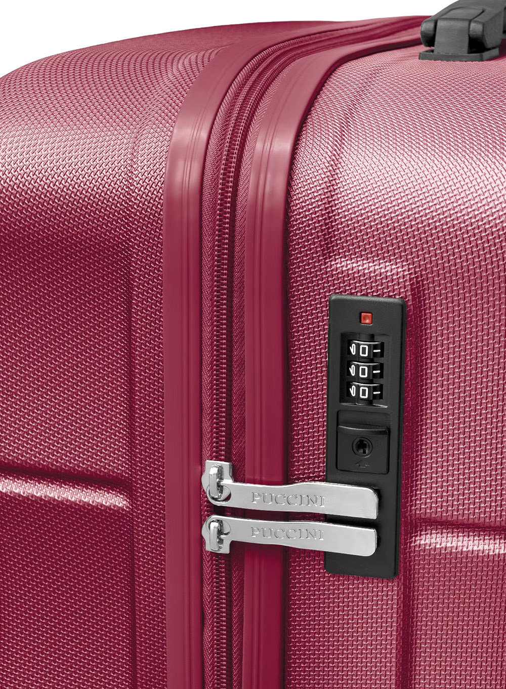 Bezpieczeństwo zawartości zapewnia zamek szyfrowy z możliwością ustawienia indywidualnego kodu. Dzięki czterem obrotowym kółkom 360°, walizka porusza się płynnie i lekko po każdej nawierzchni. Regulowana teleskopowa rączka umożliwia dopasowanie wysokości uchwytu do potrzeb użytkownika, co dodatkowo zwiększa komfort użytkowania. Kolekcja Puccini Cairo oferuje trzy rozmiary walizek – dużą, średnią i kabinową – w pięciu wariantach kolorystycznych: klasycznej czerni, granacie, bordo oraz nowoczesnych odcieniach rose gold i złotym.