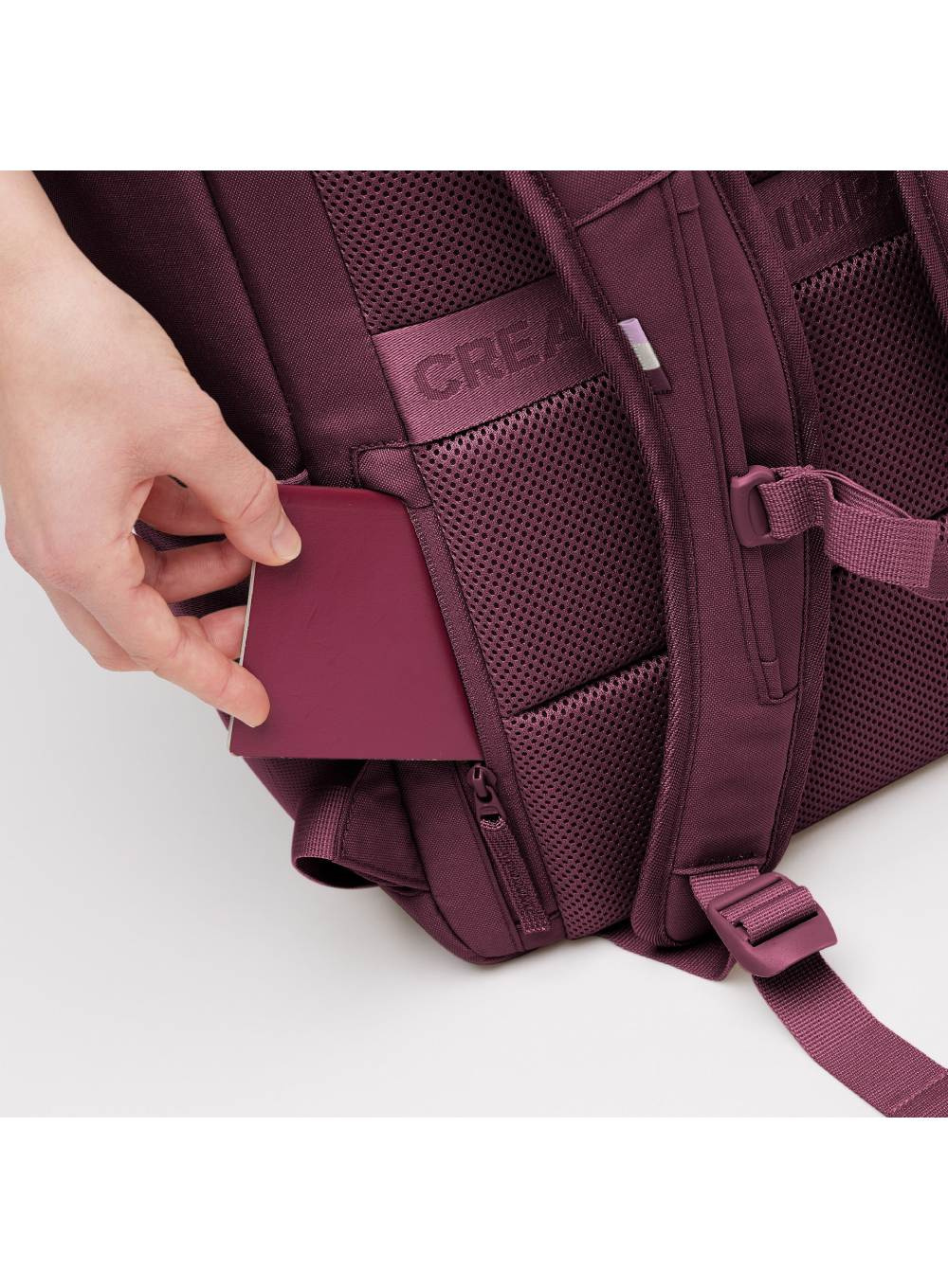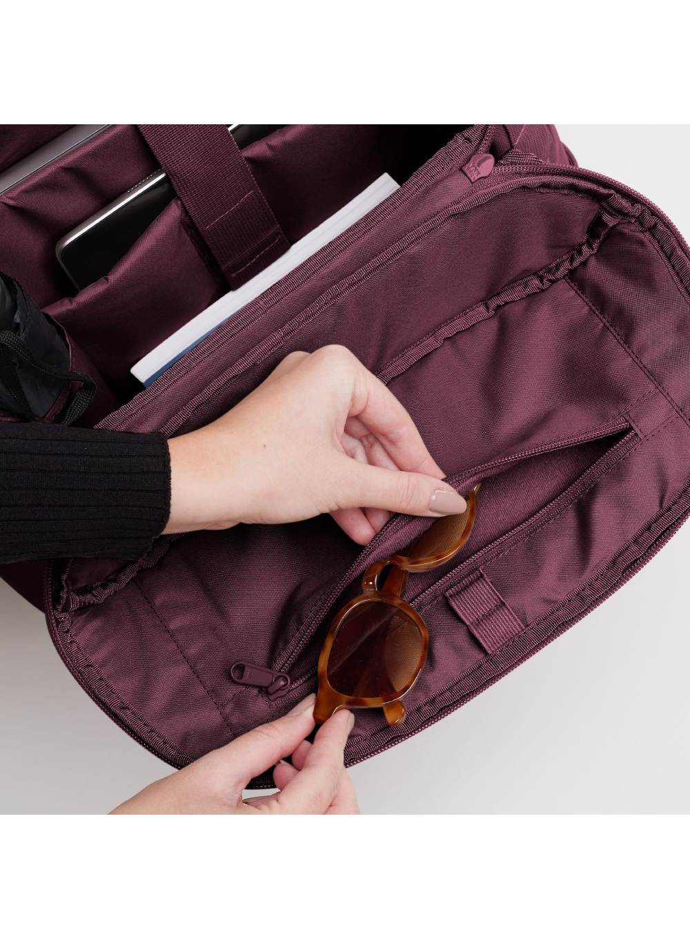 Ergonomiczne szelki, regulowany pas piersiowy i zgodność z wytycznymi IATA jako bagaż podręczny sprawiają, że plecak doskonale sprawdza się w podróży. Wykonany z materiałów z recyklingu, wolny od PVC i PFAS, z powłoką PU i DWR, jest trwały i odporny na wodę.