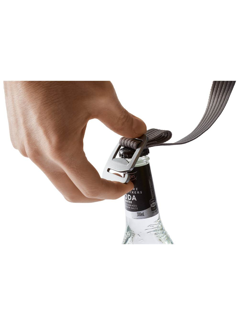 Wygodny uchwyt z zapięciem na haczyk umożliwia przypięcie jej do plecaka, a wbudowany otwieracz do butelek sprawia, że jest gotowa na każdą okazję.