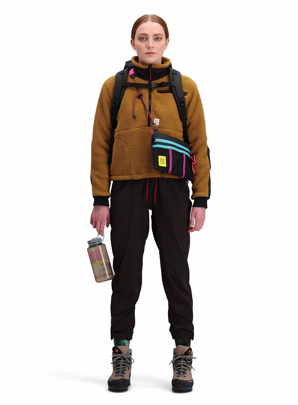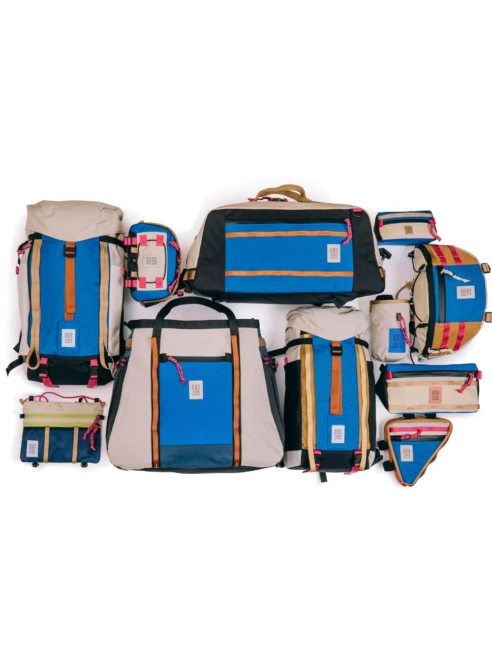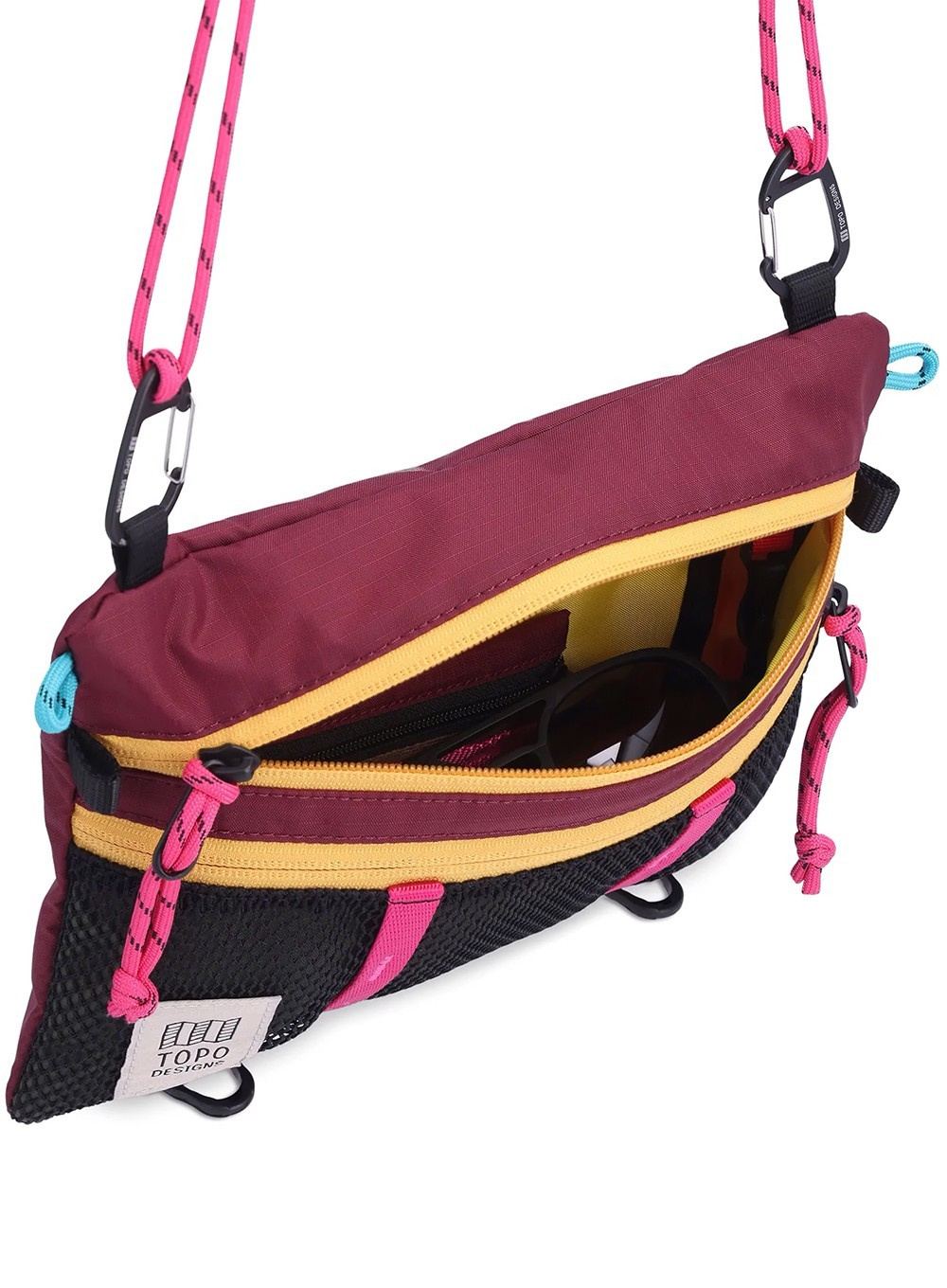 Charakterystyczna torba na akcesoria, przekształcona w torbę na ramię Topo Designs Mountain Accessory, z dodatkowym regulowanym paskiem na ramię i zewnętrznymi kieszeniami zapinanymi na zamek na telefon, mniejsze przedmioty lub klucze.