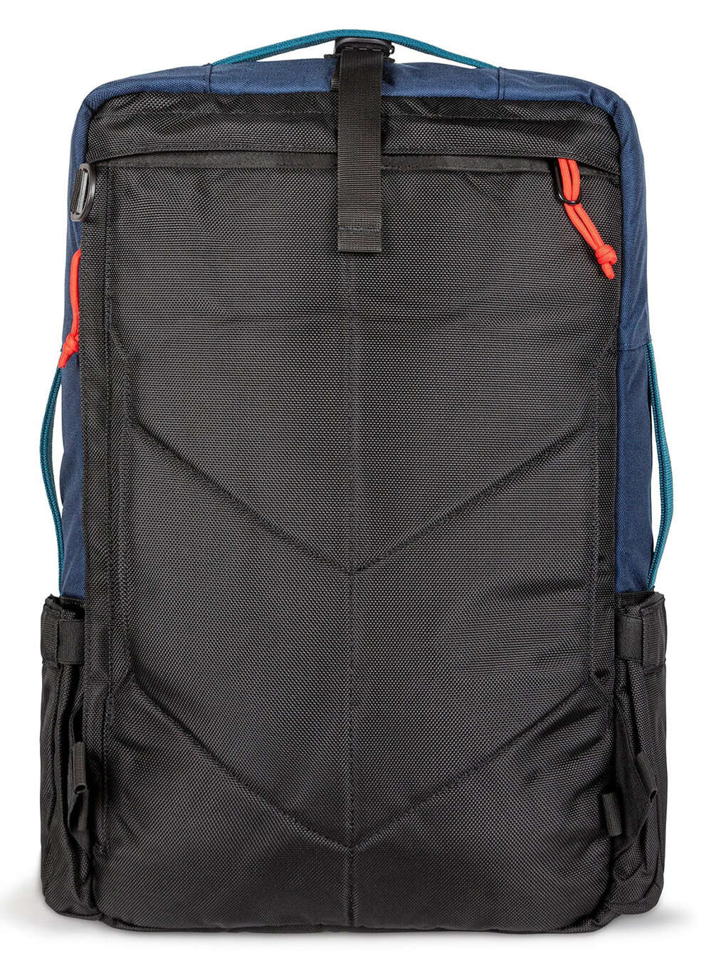 Wystarczająco kompaktowy, aby uchodzić za bagaż podręczny, jest wyposażony w rękaw umożliwiający łatwe mocowanie do uchwytu walizki na kółkach. Aby zapewnić maksymalną elastyczność, Global Travel Bag współpracuje z wieloma innymi plecakami i torbami Topo Designs jako modułowy system nośny, usprawniając uciążliwe podróże.