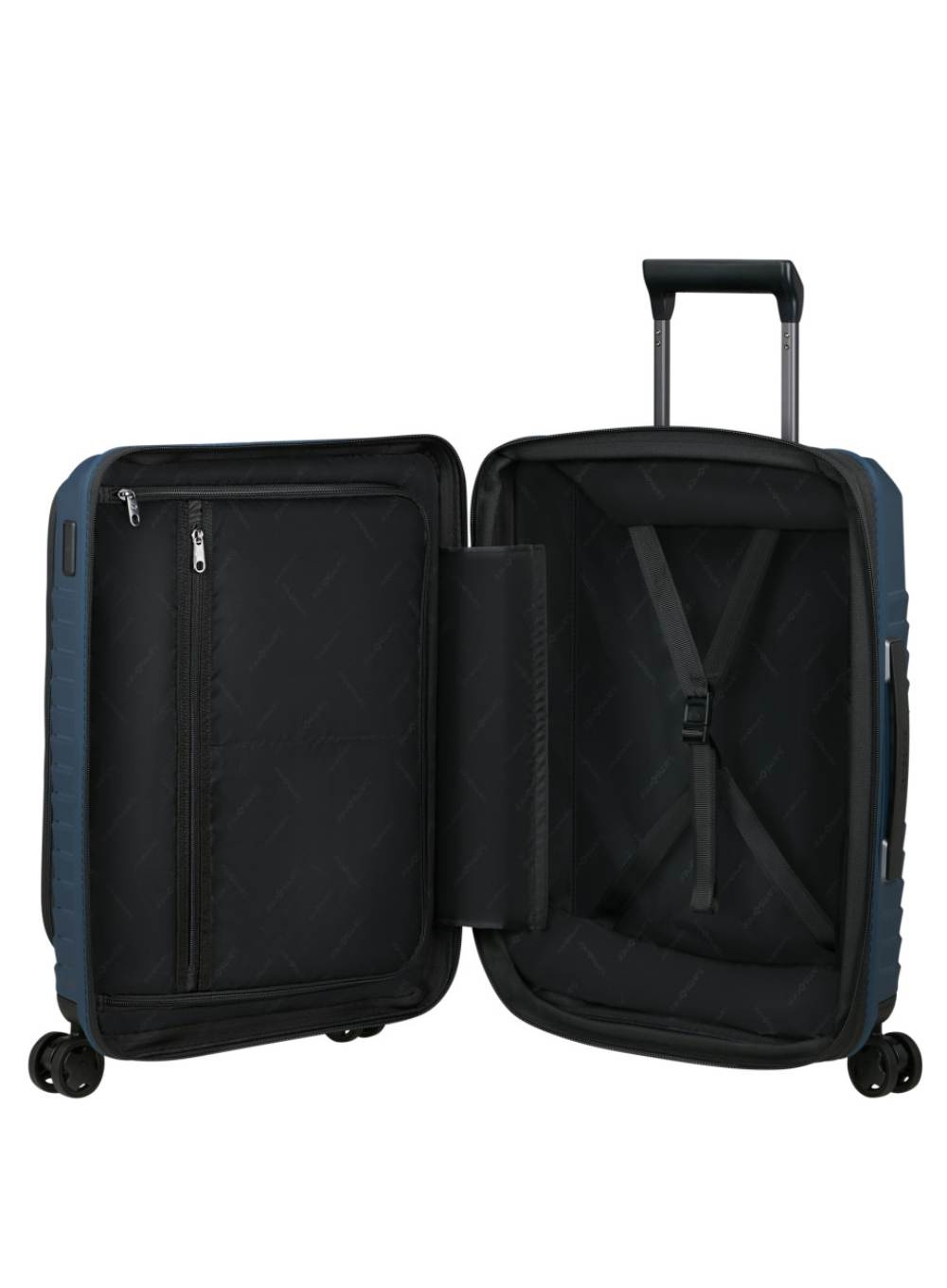 Wnętrze walizki zaprojektowano z myślą o maksymalnej organizacji - posiada zasuwaną przegrodę z kieszenią na suwak oraz regulowane pasy kompresyjne, które utrzymują zawartość na miejscu. Dodatkowy przedni schowek z kieszenią na laptop do 15,6” pozwala na szybki dostęp do dokumentów czy elektroniki. Walizka wyposażona jest w zamek TSA, zapewniający bezpieczeństwo podróży do USA.