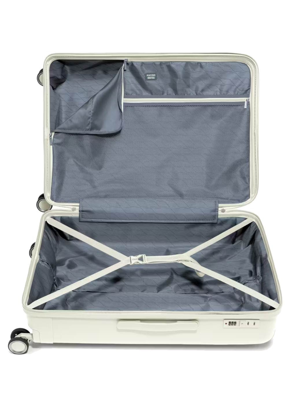 Duża walizka Puccini Turin to idealny wybór dla osób ceniących styl, funkcjonalność i bezpieczeństwo. Wykonana z wytrzymałego polipropylenu, gwarantuje ochronę bagażu podczas każdej podróży. Model posiada dwie pojemne komory – jedną z przegrodą zapinaną na zamek z kieszenią z siatki, drugą z elastycznymi pasami zabezpieczającymi Twoje rzeczy. Zamek szyfrowy TSA chroni zawartość przed dostępem osób niepowołanych, umożliwiając jednocześnie kontrolę celną bez uszkodzenia zamka.