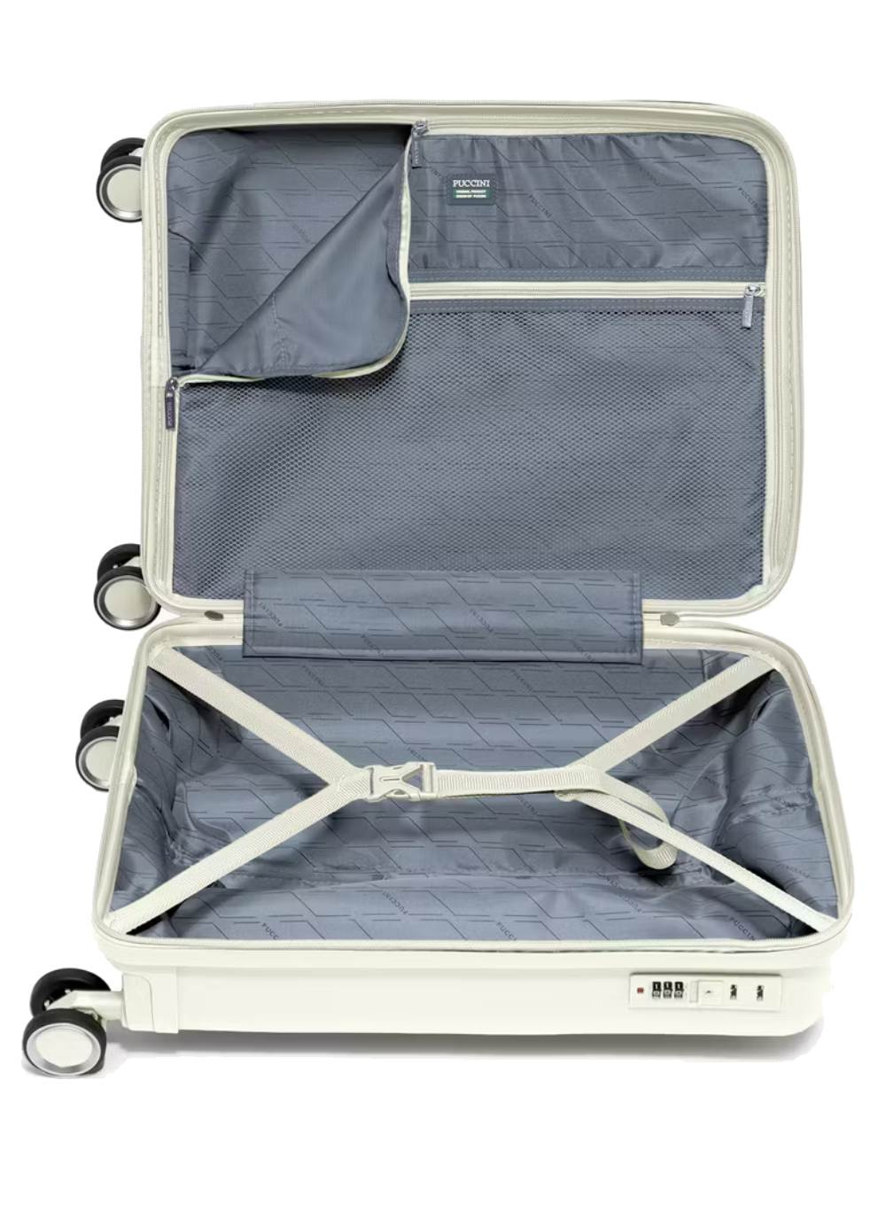 Walizka mała Puccini Turin została zaprojektowana z myślą o podróżnych ceniących wygodę i bezpieczeństwo. Wykonana z lekkiego, a jednocześnie wyjątkowo wytrzymałego polipropylenu, gwarantuje ochronę zawartości nawet w wymagających warunkach. Wnętrze walizki składa się z dwóch komór – jednej zamykanej na przegrodę z kieszenią z siatki, doskonałej do przechowywania drobnych rzeczy, oraz drugiej z pasami trzymającymi garderobę.