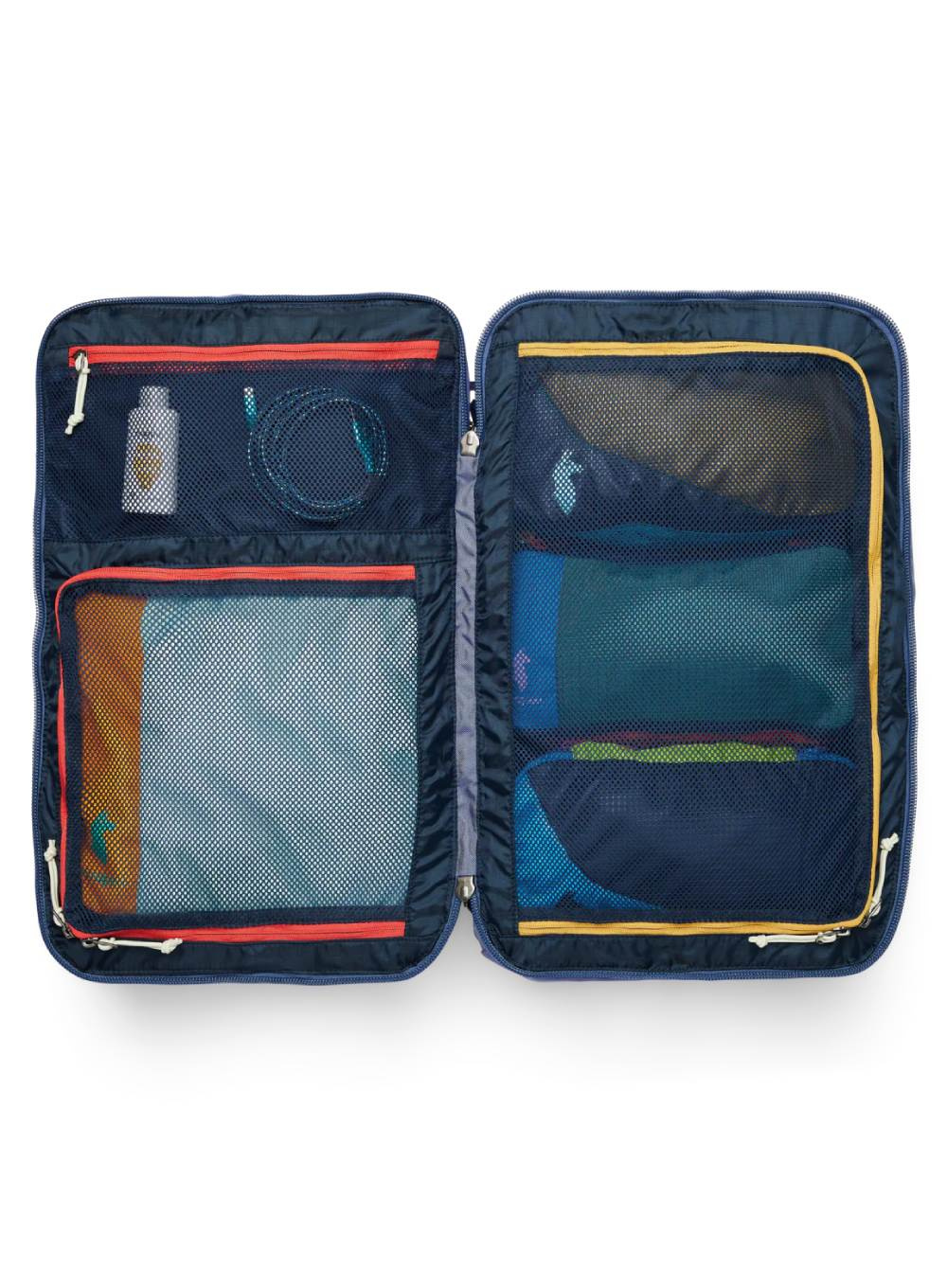 Pojemna komora główna otwierana jak walizka oraz wewnętrzne kieszenie w różnych rozmiarach ułatwiają organizację. Plecak wyposażono w wyściełaną przegrodę na laptop 15", kieszeń na butelkę, pas do mocowania na walizce oraz wytrzymałe zamki YKK z możliwością zamknięcia dodatkowym zabezpieczeniem.