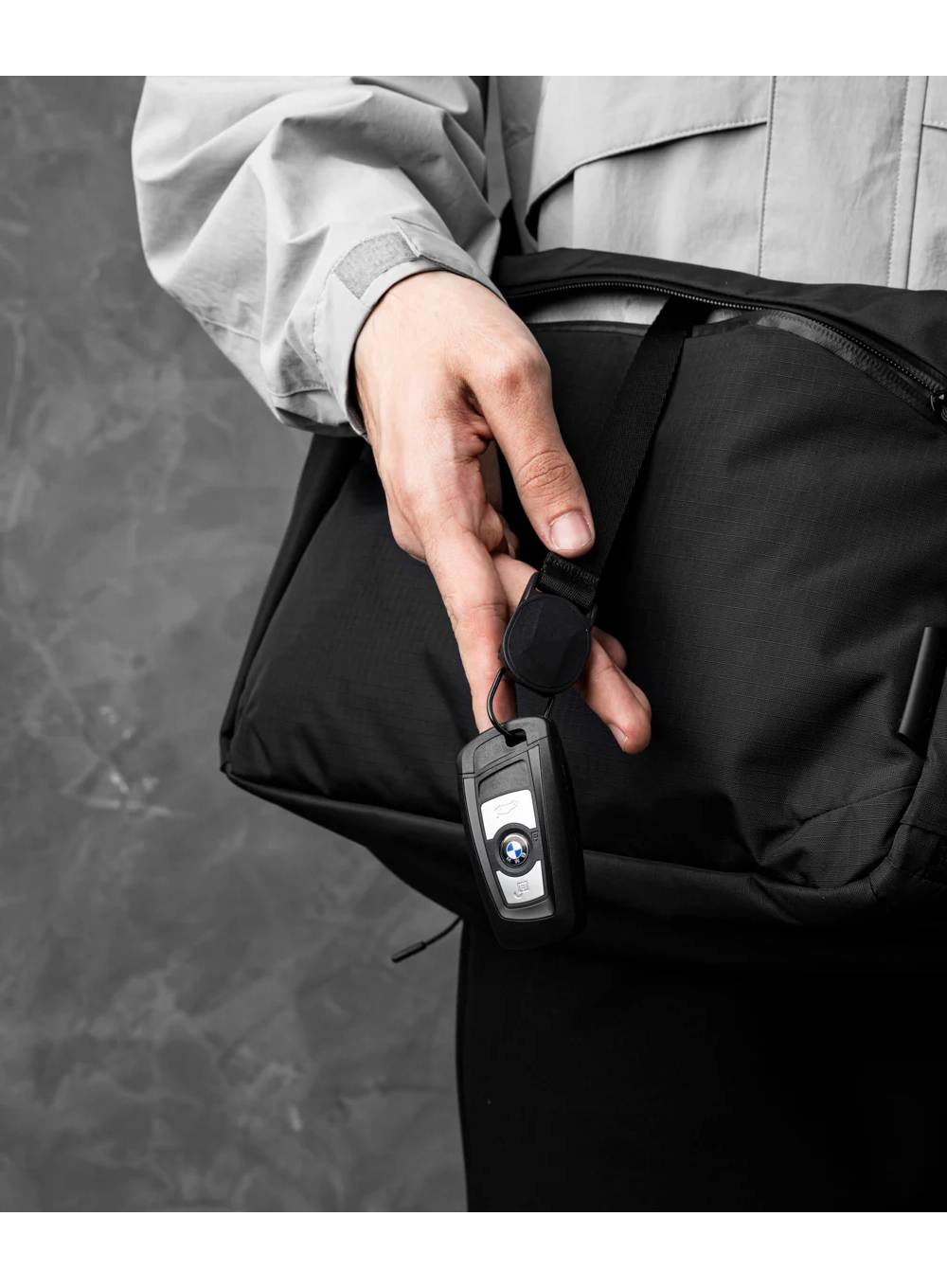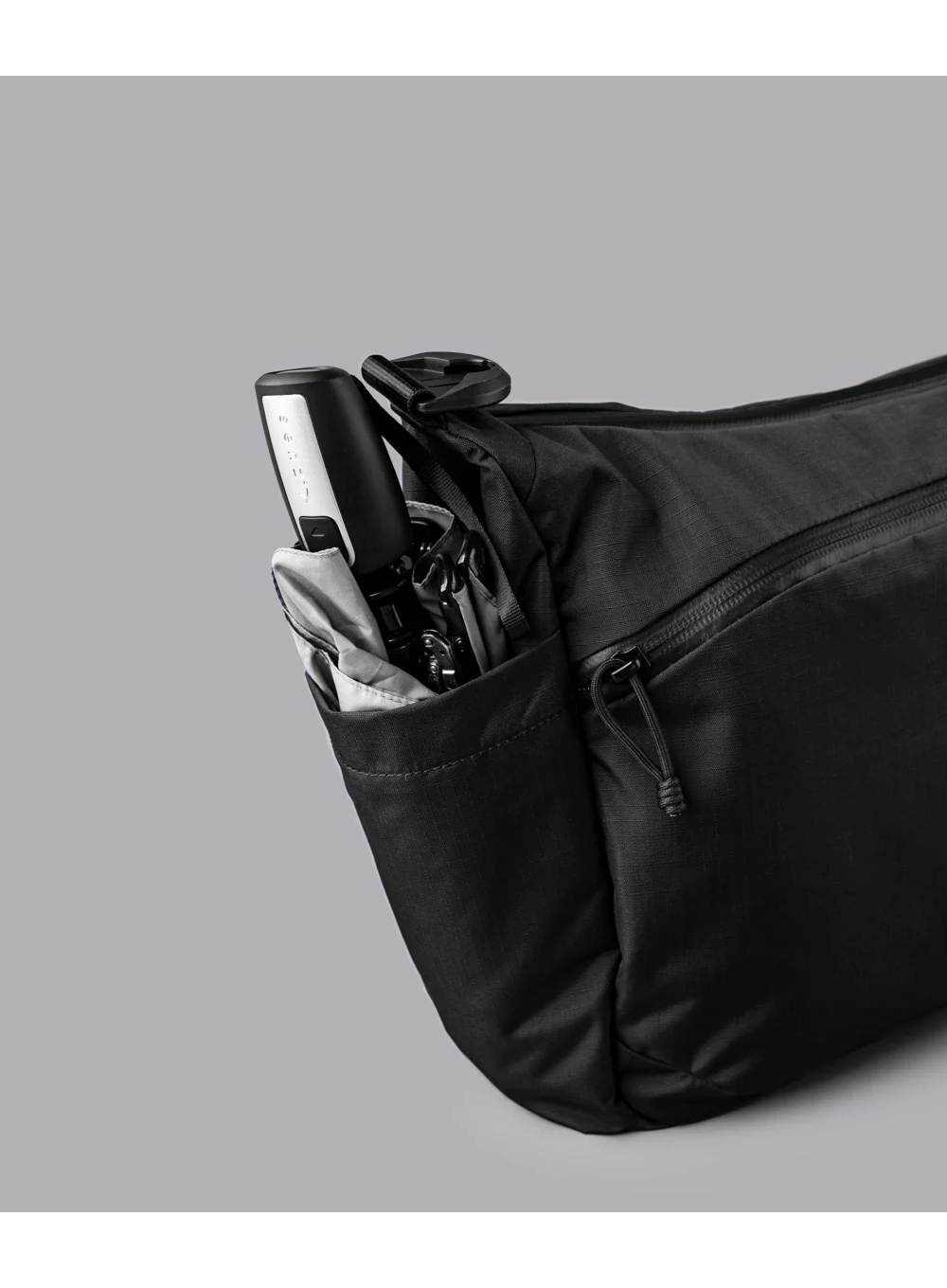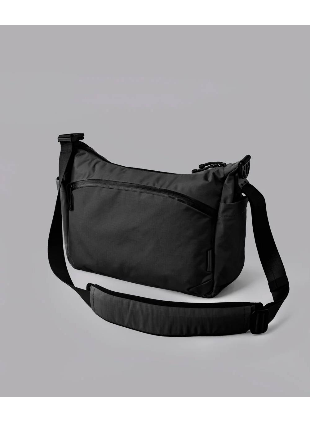 Hydrofobowe zamki YKK AquaGuard, odporny materiał Axoflux 210D (nylon ripstop z recyklingu) oraz przelotka na uchwyt walizki sprawiają, że Flight Satchel to idealny towarzysz codziennych dojazdów, pracy i podróży.