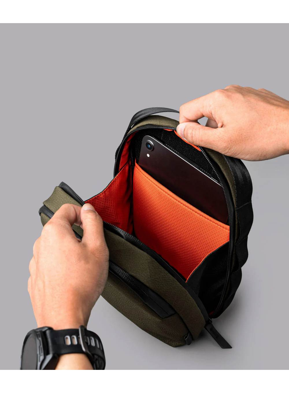 Dzięki przemyślanemu układowi kieszeni zapewnia łatwą organizację – przednia kieszeń z szybkim dostępem pozwala trzymać najważniejsze rzeczy pod ręką, a główna komora mieści większe urządzenia, takie jak iPad mini, Nintendo Switch czy słuchawki nauszne. Pionowa orientacja torby ułatwia korzystanie w ruchu, a odpinany pasek z klamrami Maglockz gwarantuje wygodę i bezpieczeństwo.