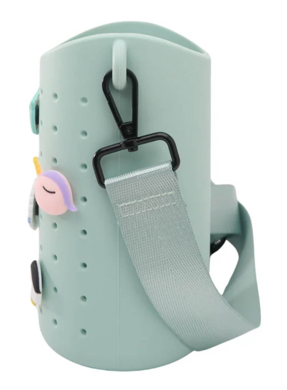 Etui na butelkę dziecięcą Asobu Bestie Sling to praktyczne i modne akcesorium, które pozwala wygodnie nosić butelkę Bestie Bottle w każdej sytuacji. Wykonane z wytrzymałego silikonu, wyposażone w regulowany nylonowy pasek oraz zestaw pięciu wymiennych zawieszek, umożliwia personalizację stylu.