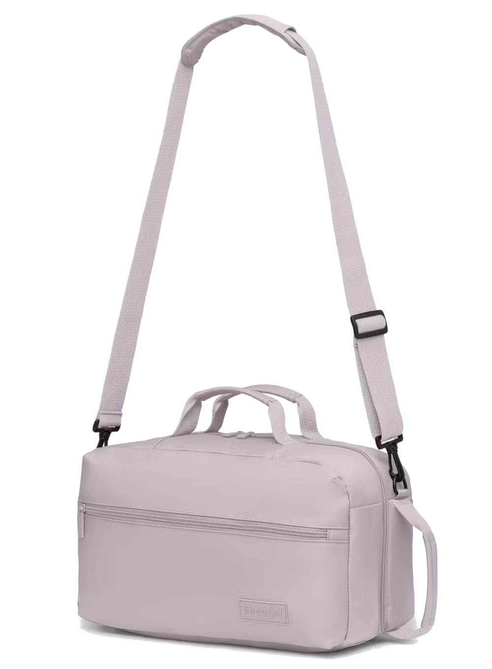 Model posiada pojemne wnętrze z licznymi kieszeniami ułatwiającymi organizację: kieszeń na laptopa, kieszeń boczną z siatki oraz zamykaną na zamek – idealną na dokumenty czy drobiazgi. Z przodu znajduje się duża kieszeń szybkiego dostępu do najpotrzebniejszych rzeczy. Torba oferuje kilka opcji noszenia – w dłoni, na ramieniu lub crossbody – dzięki odpinanemu, regulowanemu paskowi. Dodatkowy pas umożliwia mocowanie torby na uchwycie walizki, co znacznie ułatwia podróżowanie z większym bagażem.
