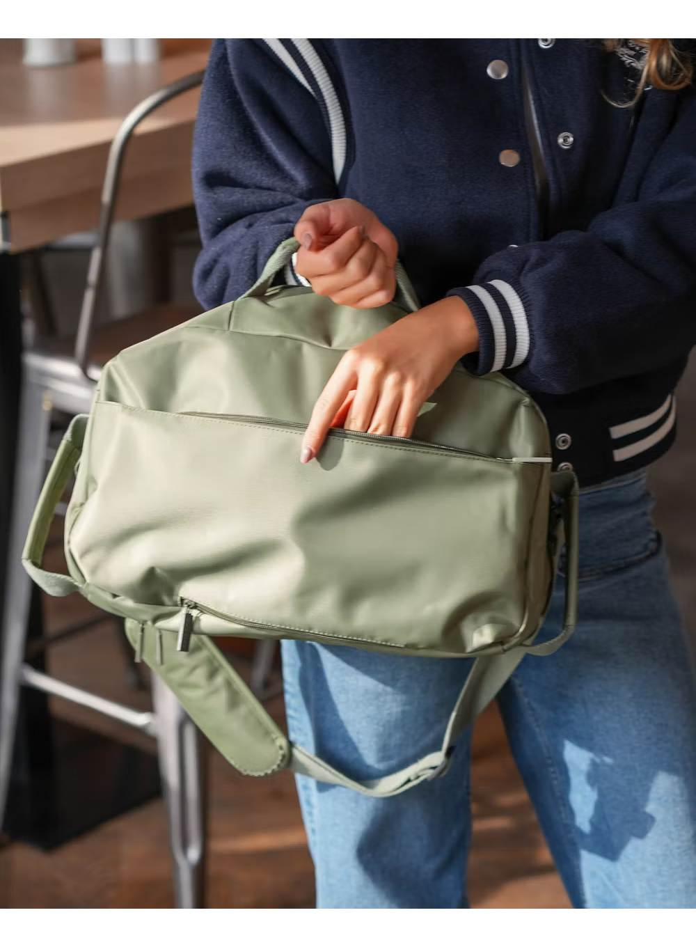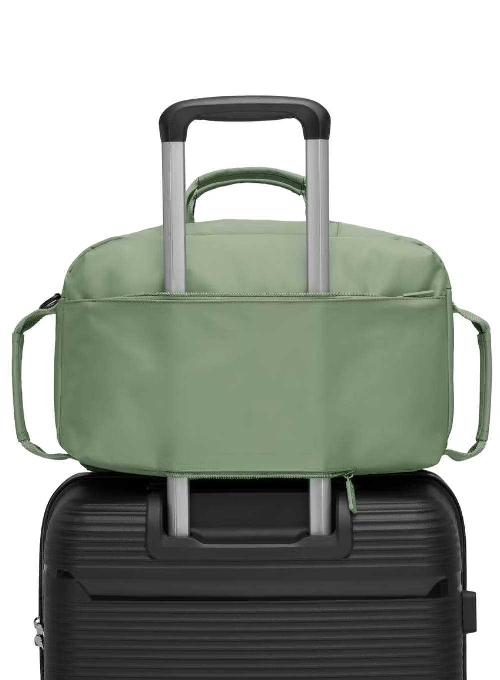 Model posiada pojemne wnętrze z licznymi kieszeniami ułatwiającymi organizację: kieszeń na laptopa, kieszeń boczną z siatki oraz zamykaną na zamek – idealną na dokumenty czy drobiazgi. Z przodu znajduje się duża kieszeń szybkiego dostępu do najpotrzebniejszych rzeczy. Torba oferuje kilka opcji noszenia – w dłoni, na ramieniu lub crossbody – dzięki odpinanemu, regulowanemu paskowi. Dodatkowy pas umożliwia mocowanie torby na uchwycie walizki, co znacznie ułatwia podróżowanie z większym bagażem.