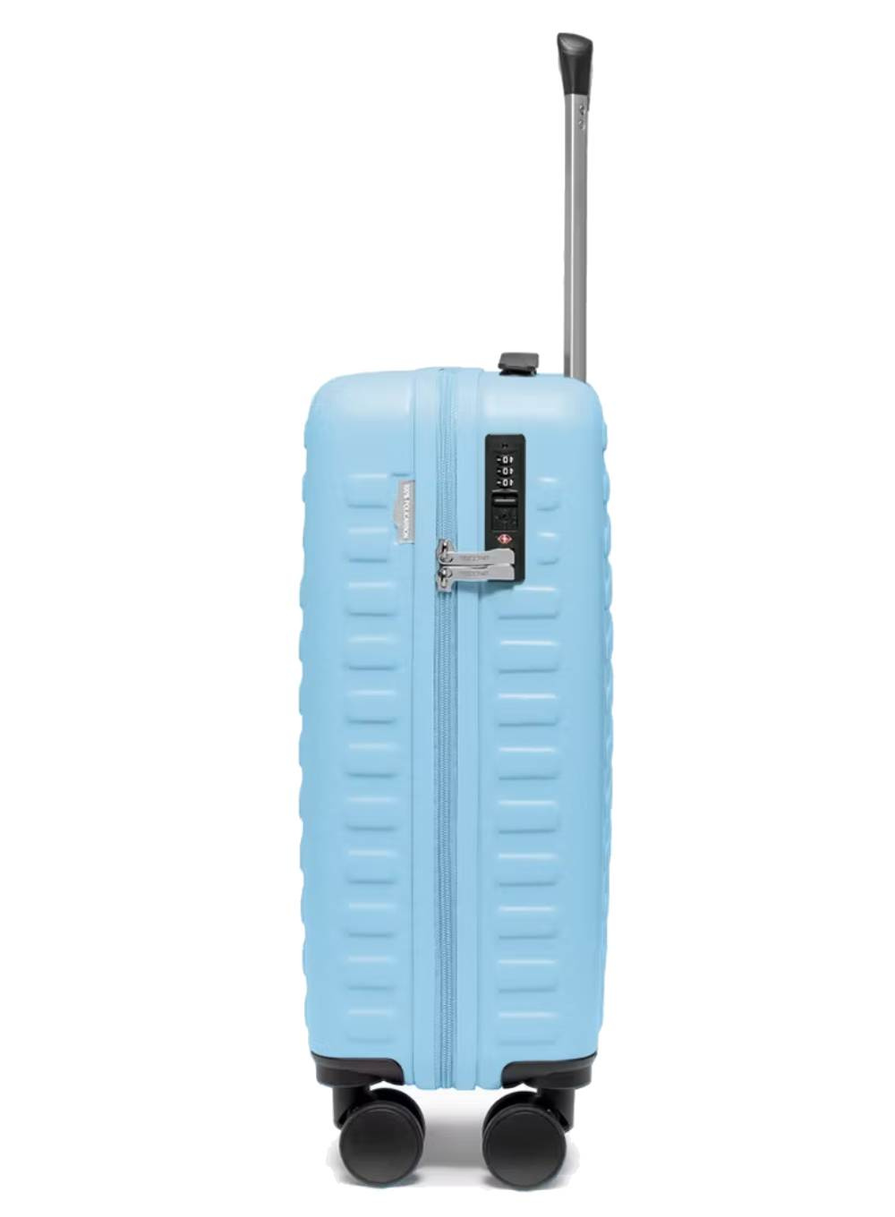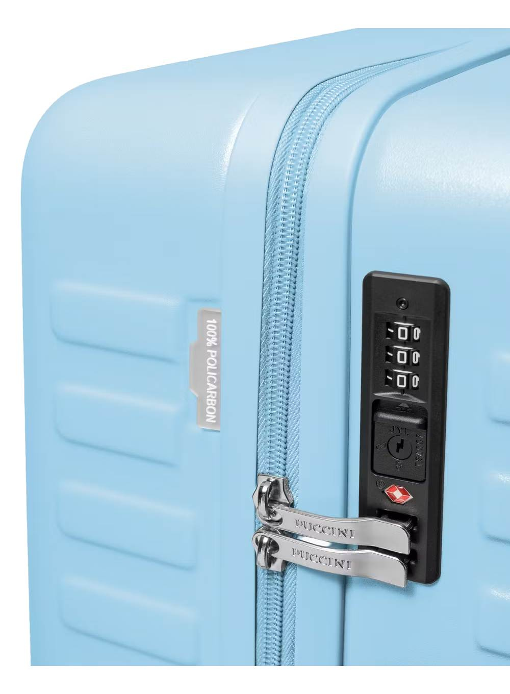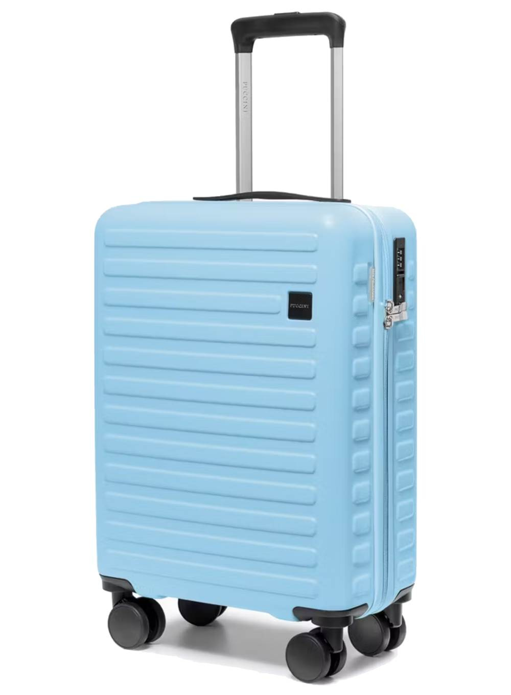Dodatkowym atutem modelu jest zamek szyfrowy TSA, który chroni zawartość bagażu i umożliwia bezpieczną kontrolę celną bez ryzyka uszkodzenia zamka. Cztery obrotowe kółka 360° oraz teleskopowa rączka gwarantują wygodne prowadzenie walizki nawet w zatłoczonych przestrzeniach. Korpus zdobią szerokie, wypukłe pasy nadające elegancki charakter, a subtelne logo PUCCINI podkreśla wysoką jakość wykonania.