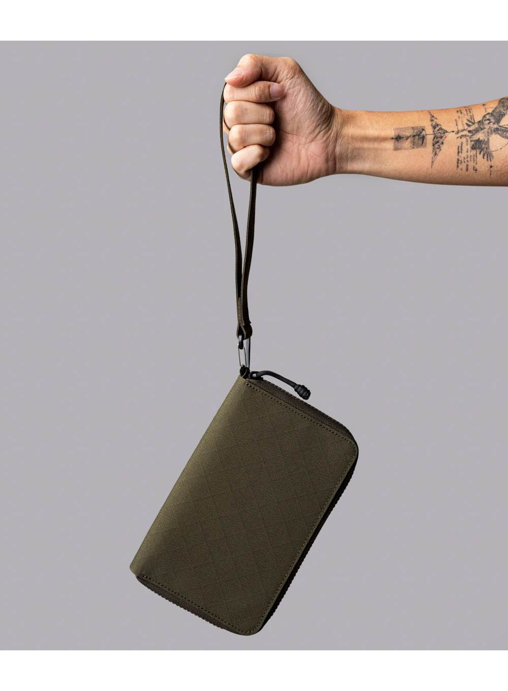 Zamek błyskawiczny zabezpiecza zawartość, a odpinany pasek na nadgarstek z klipsem Maglockz pozwala wygodnie przenosić portfel i szybko przechodzić przez kontrolę bezpieczeństwa.