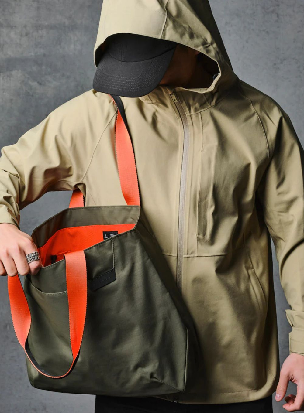 Elementy The Tote (M) wykonano z wytrzymałej tkaniny Axoflux 210D, odpornej na codzienne użytkowanie i warunki atmosferyczne. Uchwyty z taśmy zapewniają komfort noszenia, a magnetyczne zapięcie pozwala na szybkie otwieranie i zamykanie torby. Dzięki składanej konstrukcji można ją łatwo spakować i zabrać ze sobą w podróż lub na nieoczekiwane zakupy.