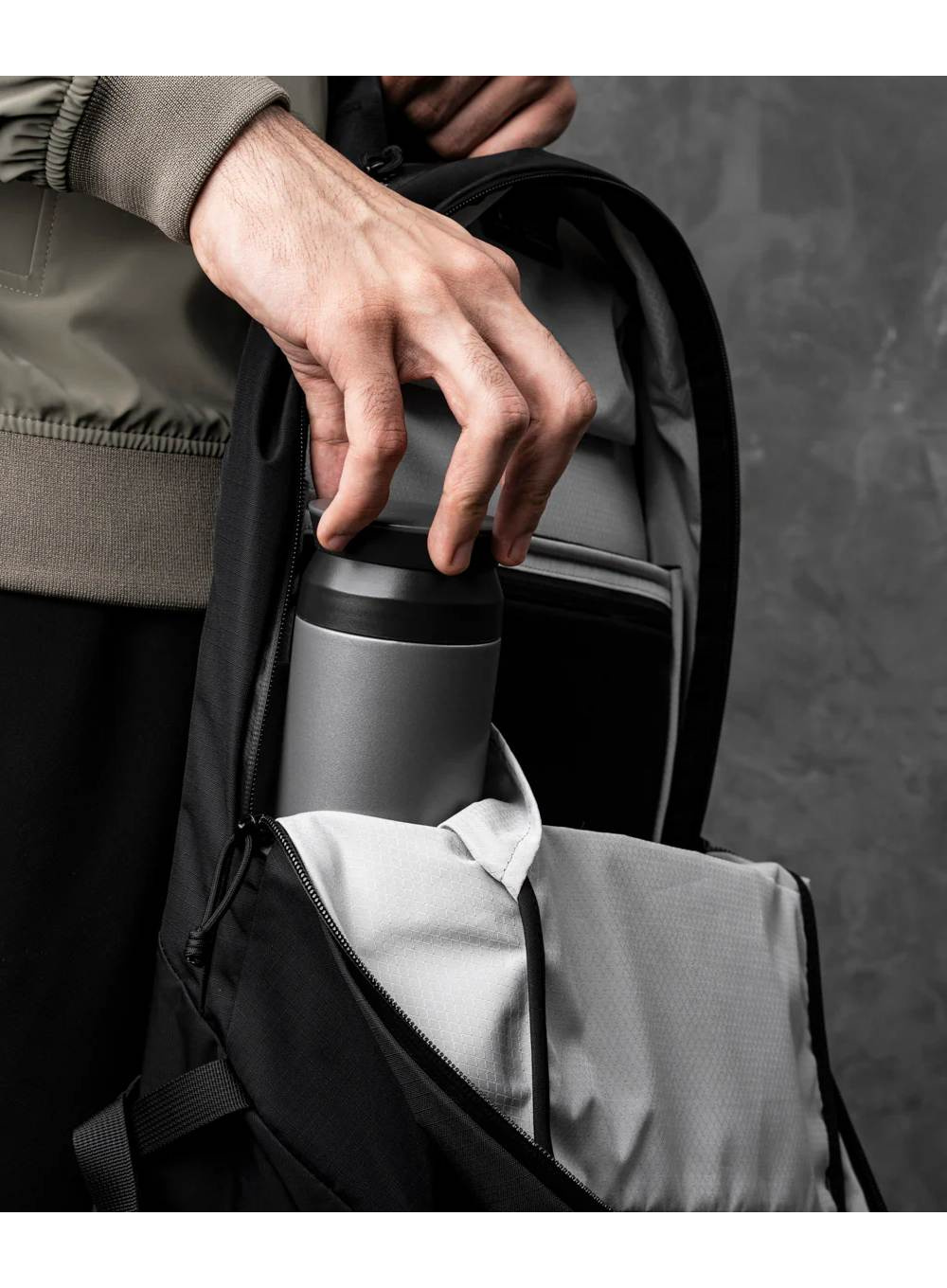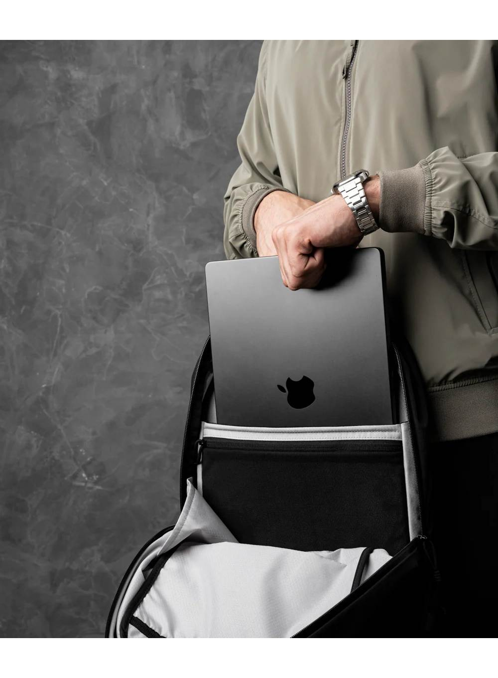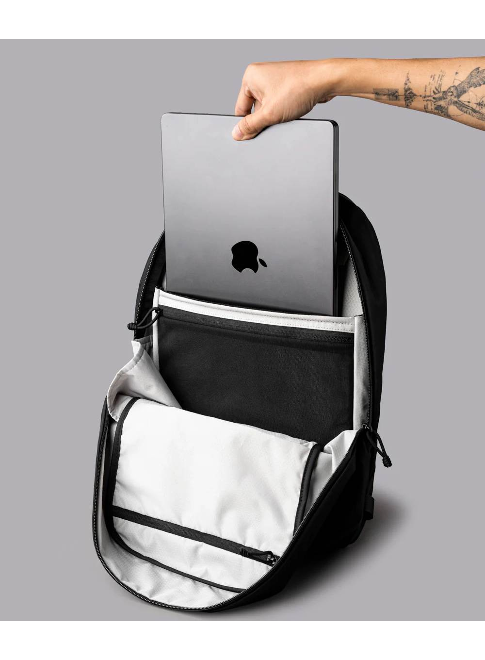 Plecak oferuje przemyślany układ kieszeni – od dedykowanego miejsca na laptop 16" MacBook Pro, po szybki dostęp do najczęściej używanych przedmiotów dzięki miękko wyściełanej górnej kieszeni. Ergonomiczna konstrukcja i lekkie materiały zapewniają wygodę użytkowania przez cały dzień.