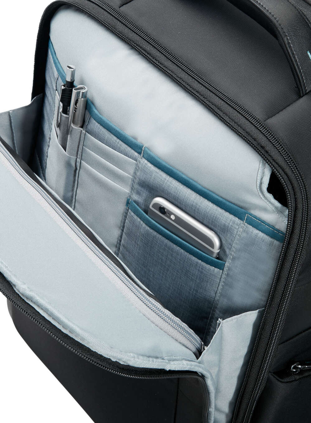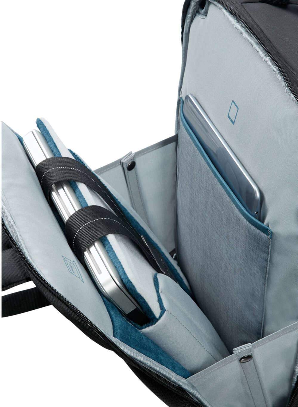 Rozszerzany plecak Samsonite Spectrolite 2.0 posiada 2 oddzielne komory. Pierwsza zapewnia dobrą ochronę komputera i tabletu o przekątnej 15,6 cala przed wstrząsami. Laptop można zabezpieczyć za pomocą paska na rzep. W drugiej komorze znajduje się duża kieszeń na dokumenty, w której zmieszczą się na przykład segregatory, podręczniki i czasopisma.