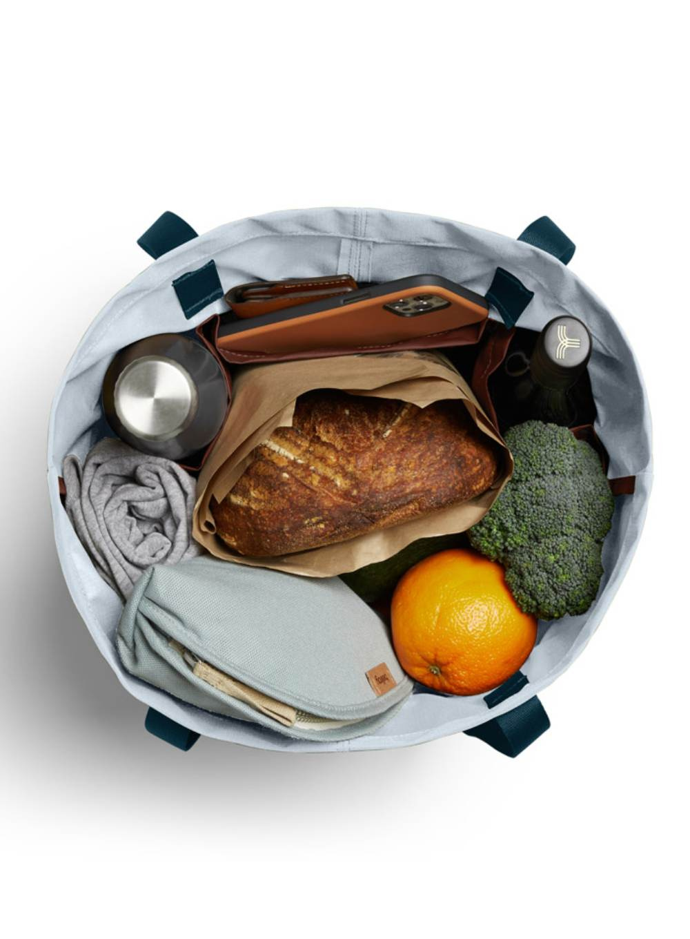 Torba Bellroy Market Tote 15 l składa się na płasko i smukło, dzięki czemu z łatwością zmieści się w schowku samochodowym, codziennej torbie, walizce lub nawet w kieszeni kurtki.