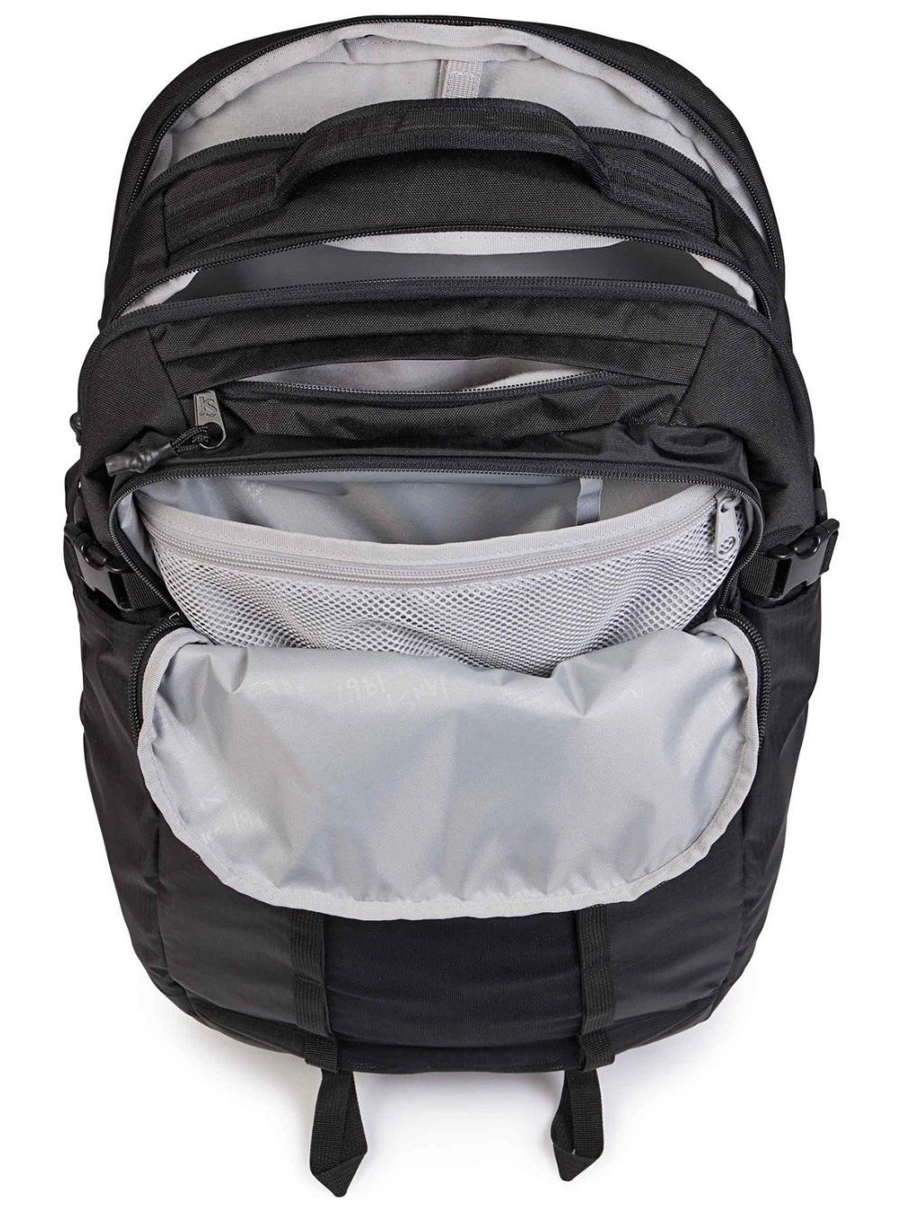 Plecak posiada pojemną główną komorę zapinaną na zamek, w której umieszczono wyściełaną kieszeń dedykowaną laptopom o przekątnej do 15". Na przednim, panelu znajduje się zamykana kieszeń na akcesoria z praktycznym klipsem na klucze, a poniżej - elastyczna przestrzeń idealna do transportu kasku rowerowego, kurtki lub innych przedmiotów wymagających szybkiego dostępu.Z obu stron plecaka umieszczono kieszenie na butelki, natomiast na górze znajduje się niewielka kieszonka na okulary lub drobiazgi. Ergonomiczne, regulowane szelki, w pełni wyściełany panel tylny oraz regulowane pasy — piersiowy i biodrowy — zapewniają doskonałe dopasowanie i wygodę noszenia. Dodatkowe taśmy kompresyjne pomagają ustabilizować ładunek, a przednie taśmy typu daisy chain umożliwiają przypięcie dodatkowych akcesoriów.