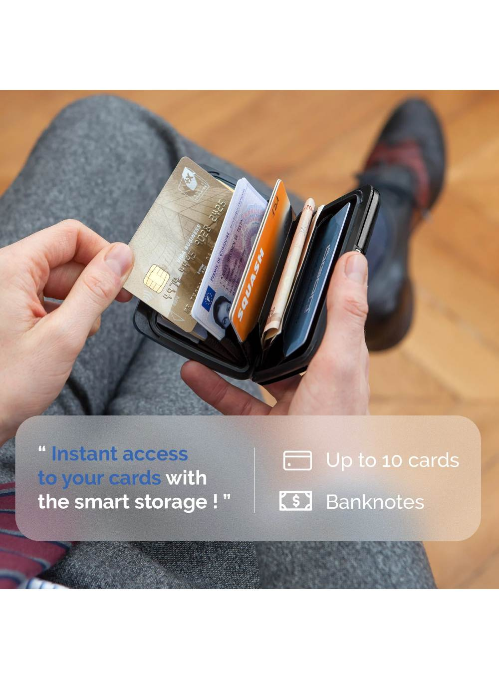 - Mieści do 10 kart + rachunki + bilety