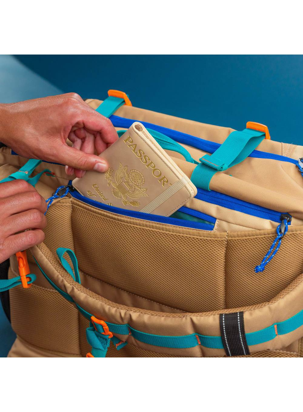 Plecak mieści laptop 16", ma ukrytą kieszeń na paszport, liczne kieszenie wewnętrzne i zewnętrzne, a dzięki chowanym szelkom może szybko zamienić się w torbę typu duffel.