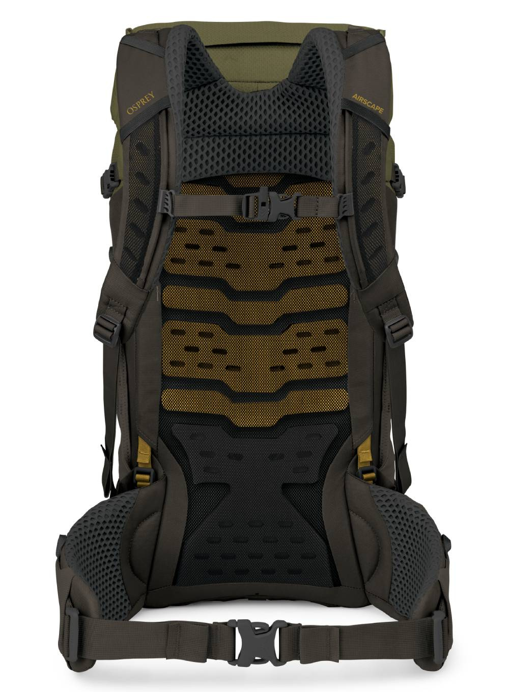 AirScape™ to system nośny Osprey, na który składają się piankowe grzebienie panelu tylnego, pas biodrowy, pasy ramienne zapewniające komfort, idealne dopasowanie i stabilność nawet z maksymalnym obciążeniem. AirScape™ utrzymuje ciężar plecaka blisko ciała, a piankowe kanały zapewniają przestrzeń dla przepływu powietrza. Materiały siatkowe użyte w tym systemie odprowadzają pot, wspomagają chłodzenie i chronią przed odparzeniami. AirScape™ zapewnia stabilność i jest stosowany zarówno w lekkich plecakach, jak i dużych plecakach do wymagających wędrówek.