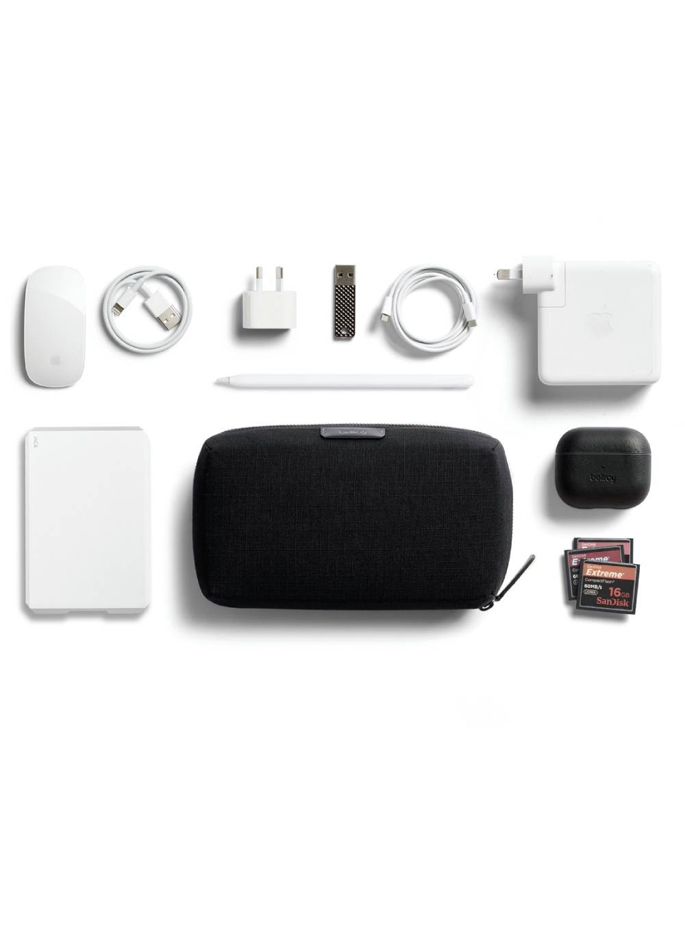 Zorganizuj swoje akcesoria technologiczne bez splątanych kabli. Pojemny organizer na elektronikę i kable Bellroy Tech Kit pomaga utrzymać porządek i wszystko na swoim miejscu.