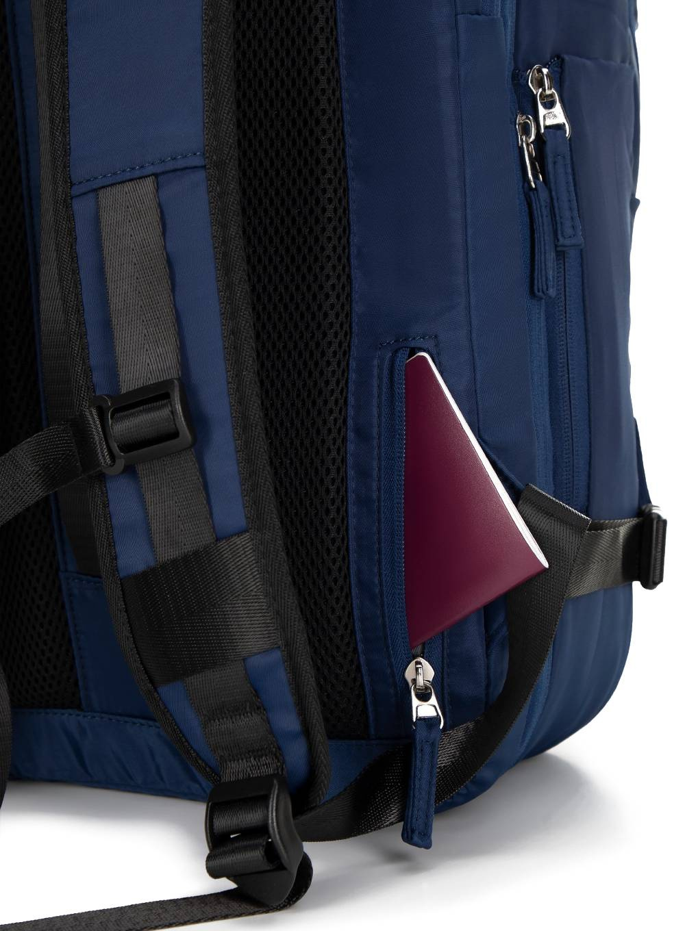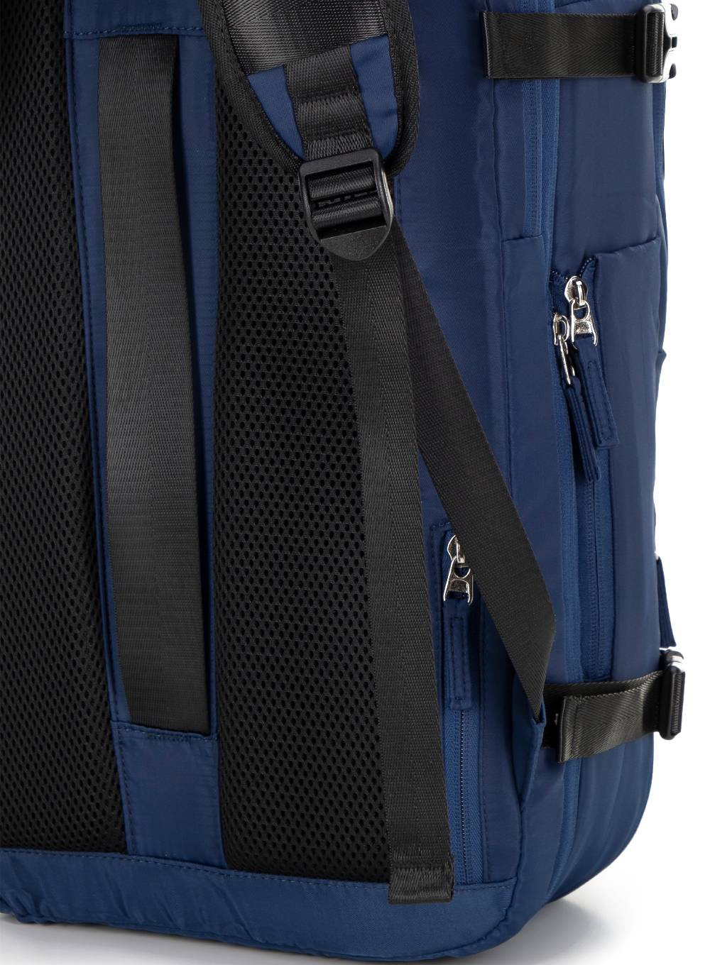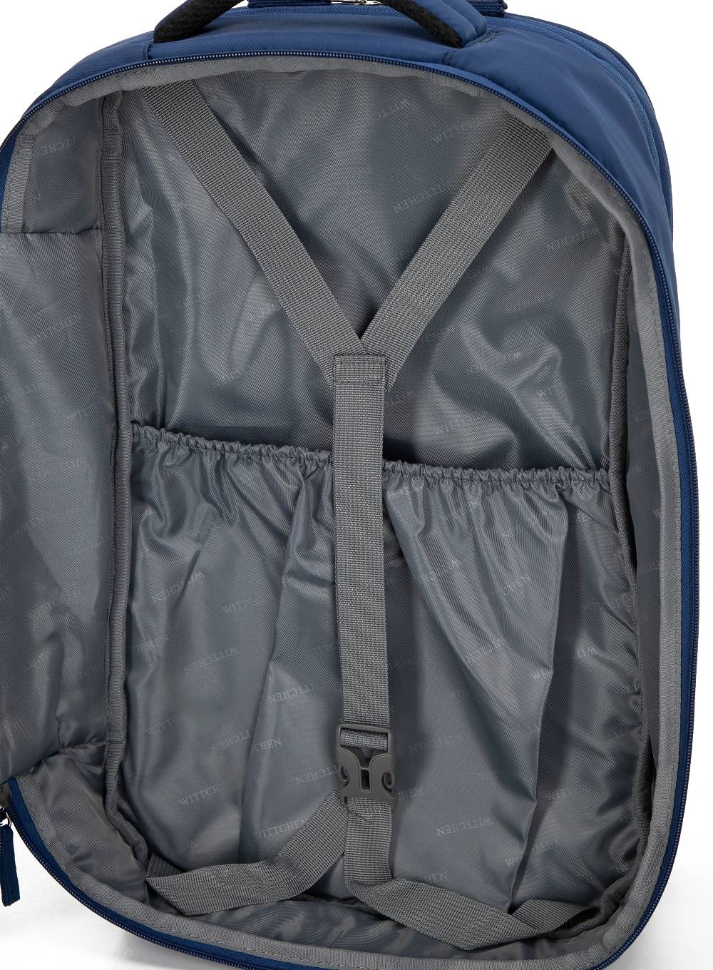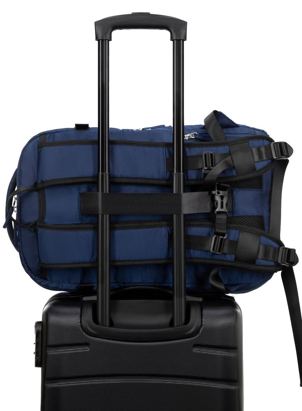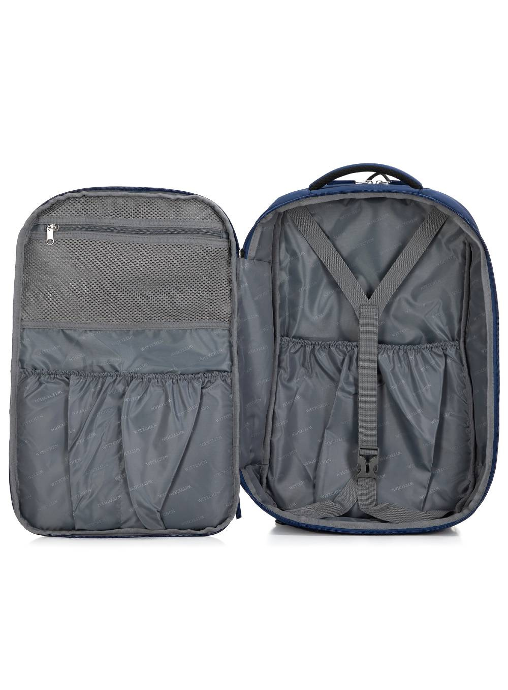 • Tylny pas umożliwiający mocowanie plecaka do rączki walizki