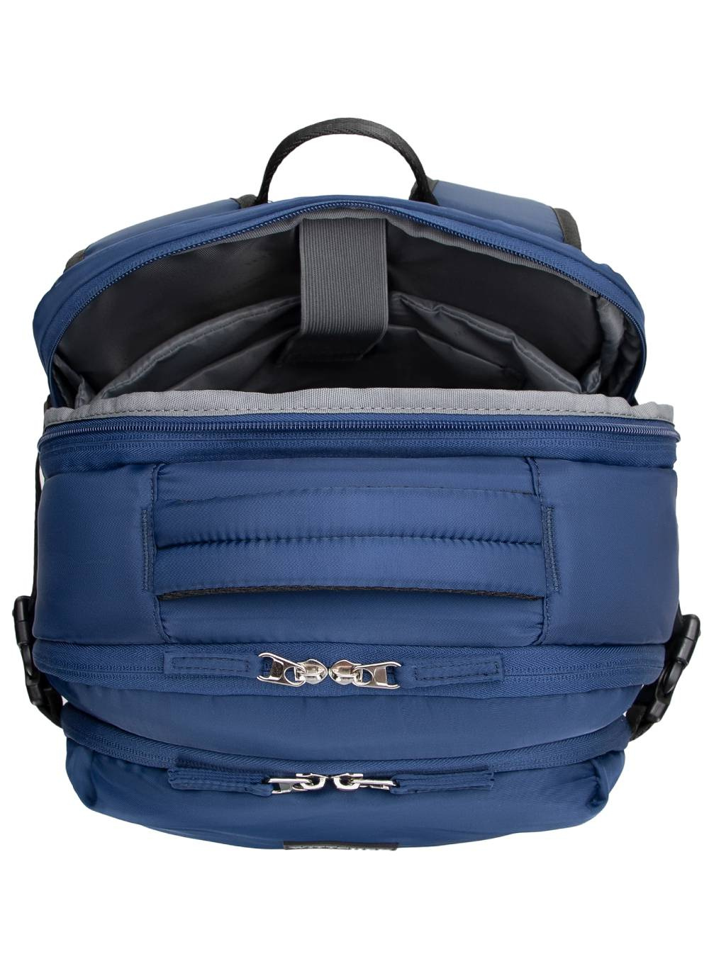 Trójkomorowa konstrukcja z wyściełaną kieszenią na laptopa do 17" zapewnia bezpieczne przechowywanie sprzętu, a możliwość poszerzenia zwiększa pojemność plecaka w razie potrzeby.