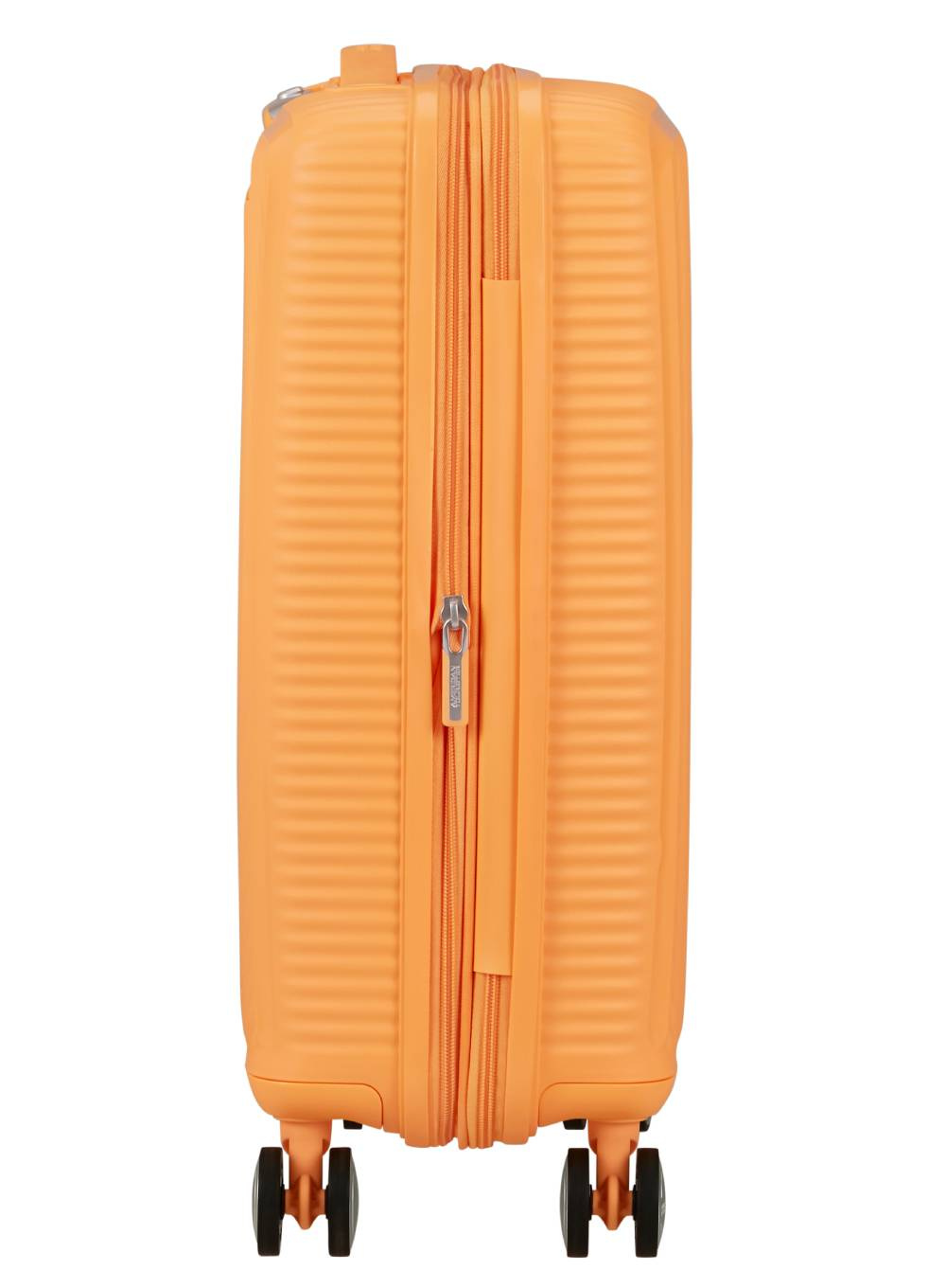 Mała poszerzana walizka Soundbox American Tourister to wytrzymały model wykonany w całości z mocnego polipropylenu. Żłobiona faktura zewnętrznej powłoki prezentuje się bardzo elegancko i nowocześnie. Osadzona na 4 obrotowych kółkach sprawia, że poruszanie się z nią nie będzie stanowiło żadnego wyzwania.