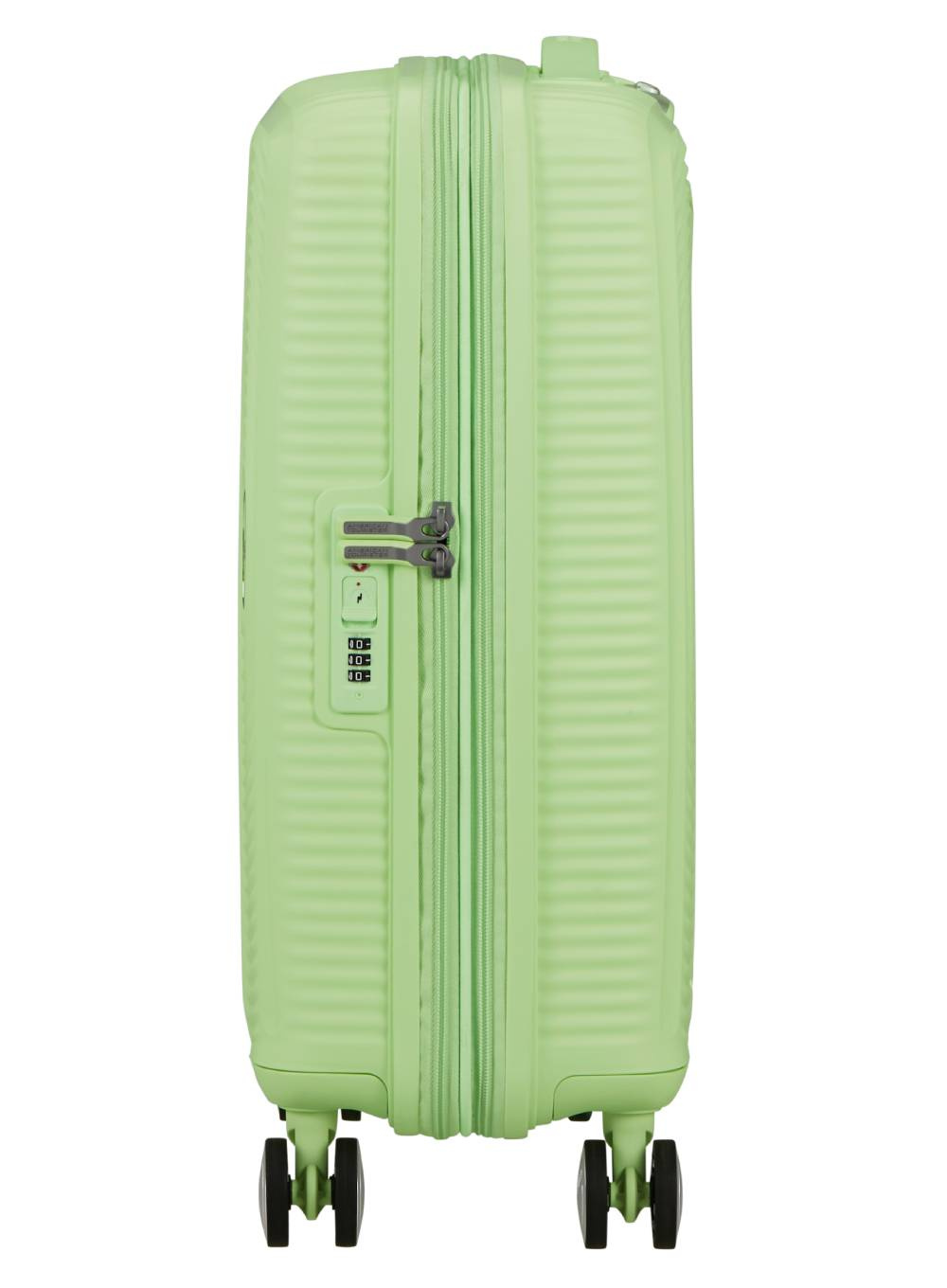 Mała poszerzana walizka Soundbox American Tourister to wytrzymały model wykonany w całości z mocnego polipropylenu. Żłobiona faktura zewnętrznej powłoki prezentuje się bardzo elegancko i nowocześnie. Osadzona na 4 obrotowych kółkach sprawia, że poruszanie się z nią nie będzie stanowiło żadnego wyzwania.