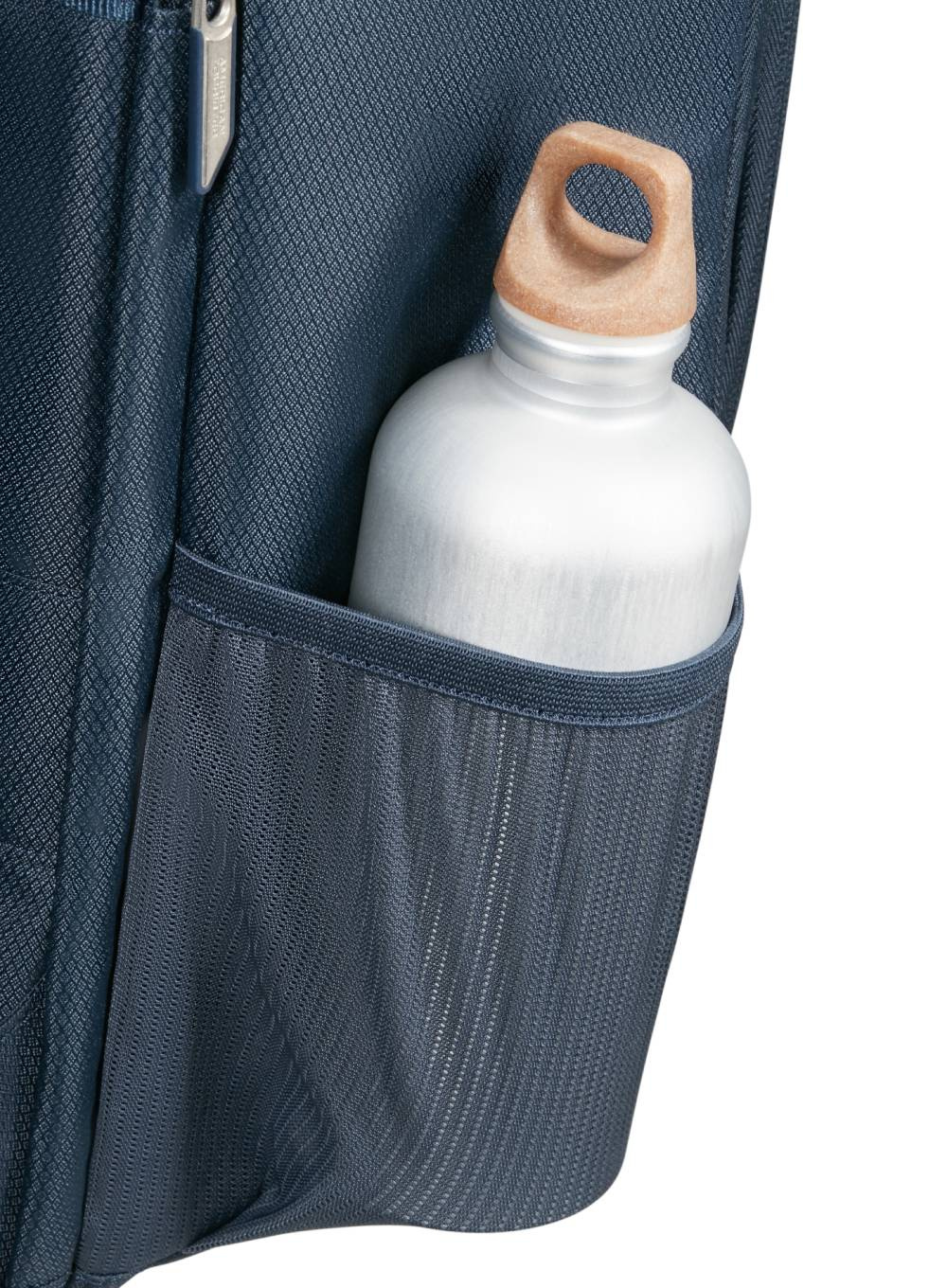 Pas przelotowy z tyłu umożliwia łatwe mocowanie plecaka na rączce walizki, a boczne kieszenie pozwalają wygodnie przenosić butelkę z wodą. Elementy odblaskowe zwiększają widoczność, a kompaktowe wymiary sprawiają, że plecak spełnia wymagania wielu linii lotniczych jako bagaż podręczny lub underseater.