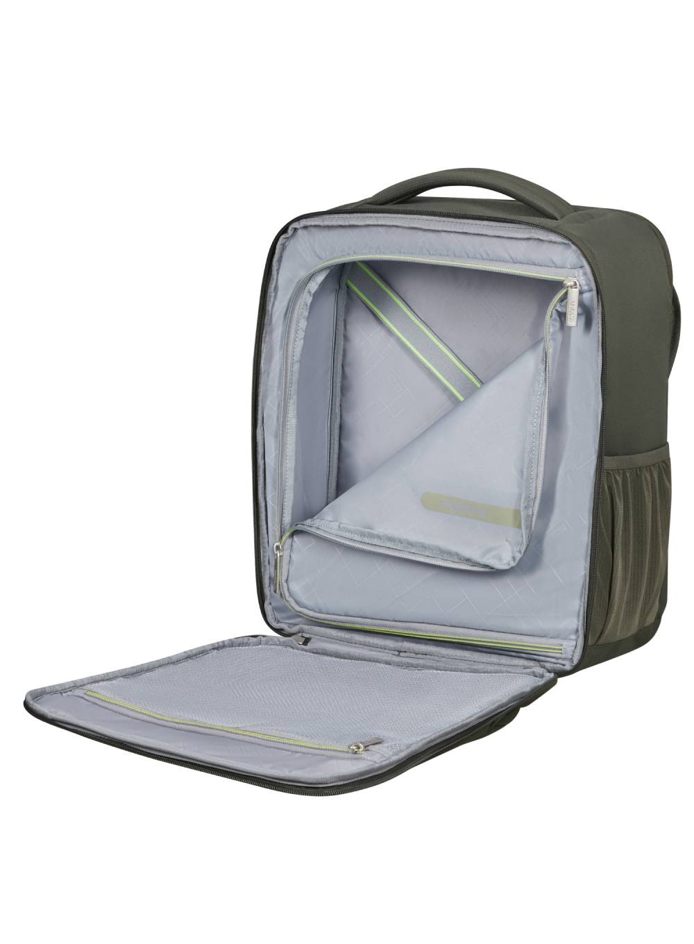 Plecak podręczny, na laptopa American Tourister Wanderlite S/M łączy miejski styl z trwałością i inteligentną funkcjonalnością, oferując dedykowaną komorę na laptopa 15,6" i tablet, osobną przestrzeń na ubrania z pasami oraz praktyczne kieszenie z przodu.