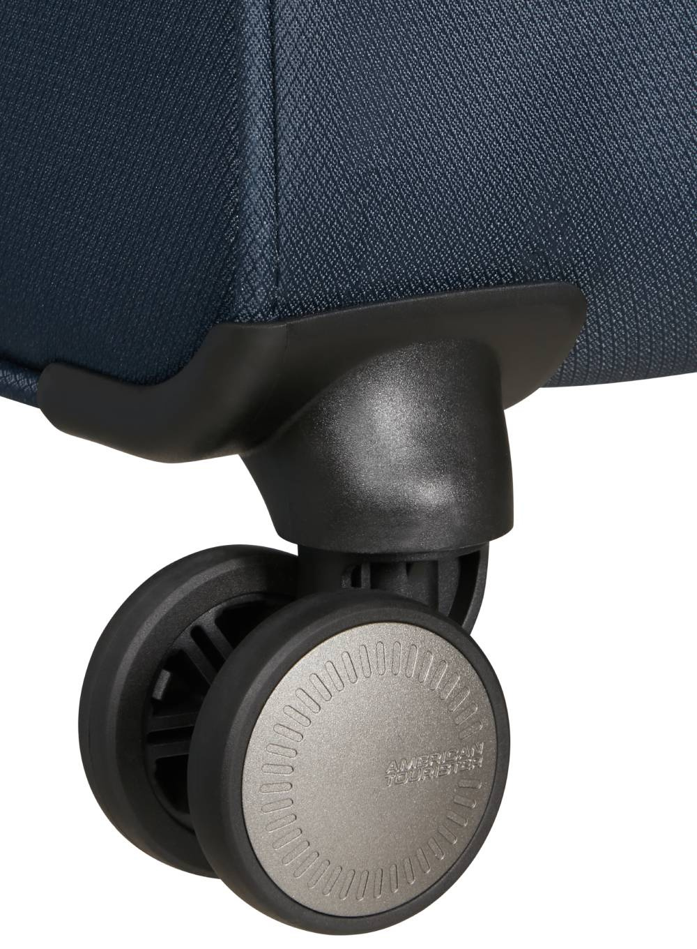 Kabinowa walizka miękka American Tourister Wanderlite S EXP łączy miejski design z trwałością i inteligentną funkcjonalnością, oferując możliwość poszerzenia pojemności, płynnie działające podwójne koła XL oraz zamek TSA.