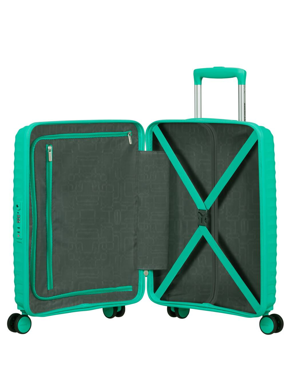 Podwójne koła obracające się o 360° zapewniają płynne prowadzenie, natomiast ergonomiczny uchwyt i regulowana rączka teleskopowa zwiększają komfort użytkowania. Wbudowany zamek TSA dba o bezpieczeństwo bagażu, a funkcjonalne wnętrze z pasami i przegrodą z kieszenią ułatwia organizację rzeczy.