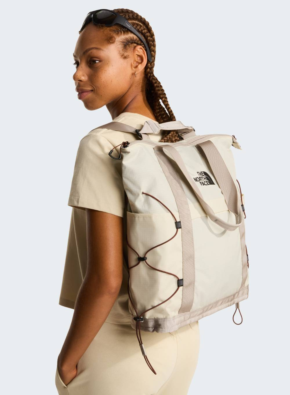 Inspirowana plecakiem Borealis, wersja Borealis Tote The North Face wykorzystuje niektóre rozpoznawalne detale plecaka, takie jak zewnętrzna linka bungee, aby przymocować swoje rzeczy, aby były bezpieczne.