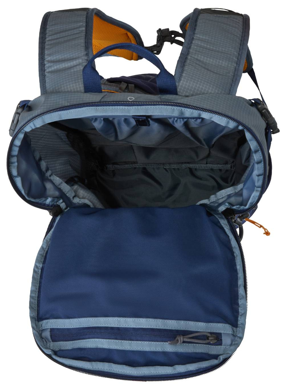 Wytrzymały, a jednocześnie wyjątkowo lekki (850 g) materiał sprawia, że plecak jest niemal niewyczuwalny na plecach, a wyściełany pas biodrowy z kieszeniami pomaga równomiernie rozłożyć ciężar. Boczne paski kompresyjne pozwalają zmniejszyć objętość plecaka, a uchwyty na kije trekkingowe i czekan czynią go idealnym towarzyszem na szlaku.